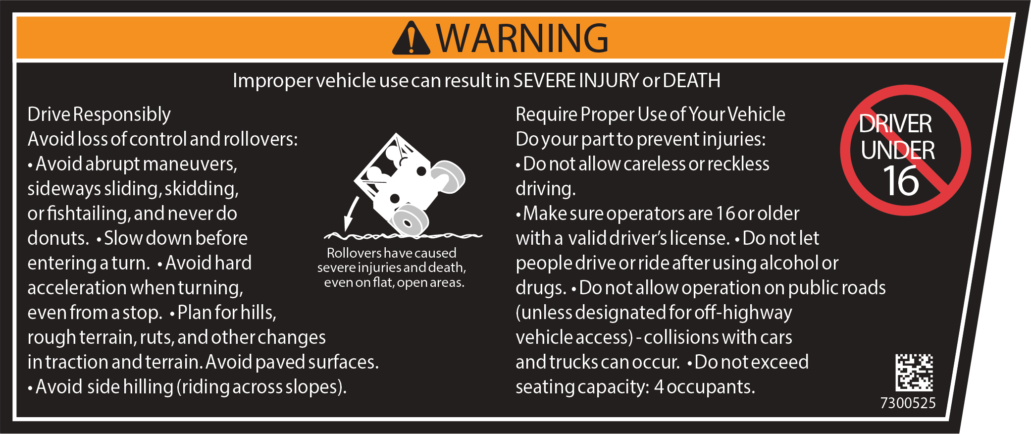 Avoid loss of control and rollovers: