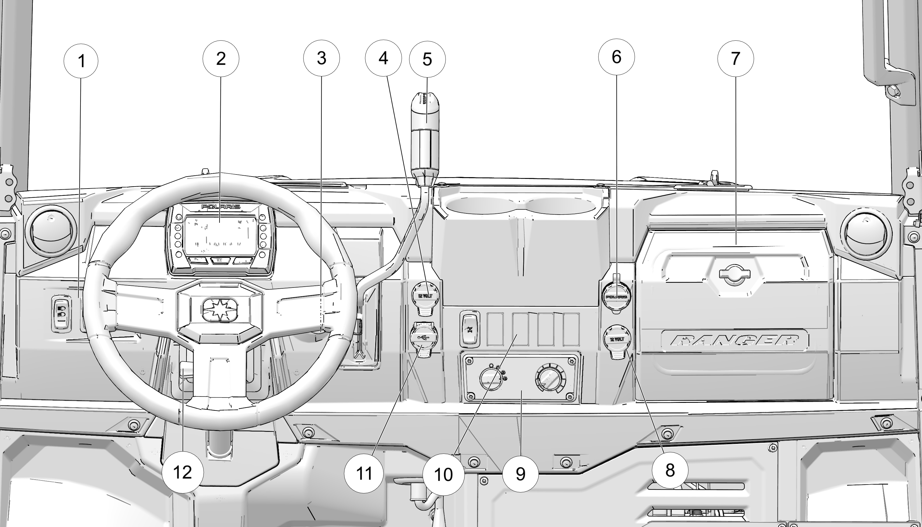 | 2 Instrument Cluster | 8 12V Auxiliary Outlet | |