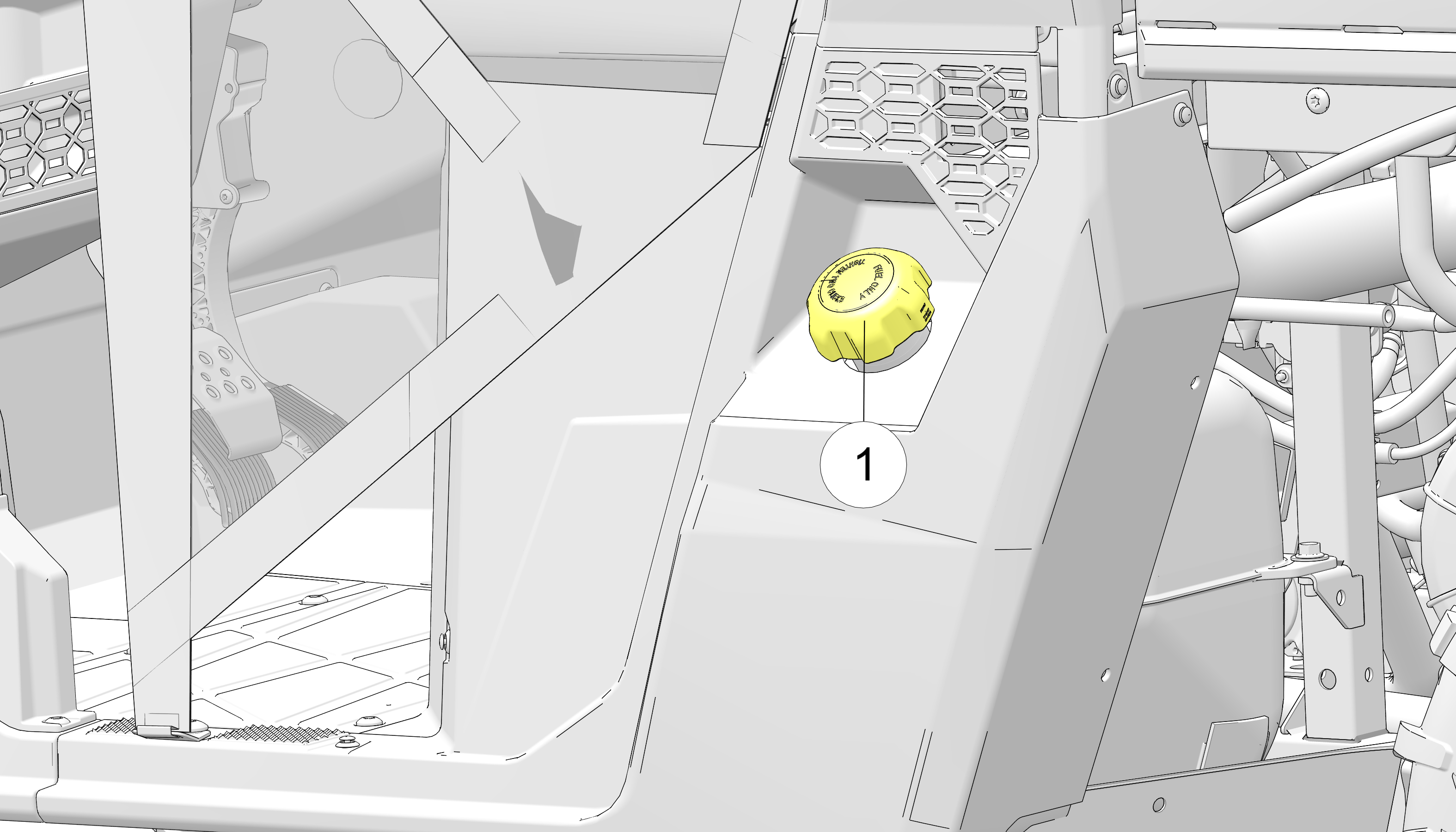 The fuel tank filler cap 1 is located on the right-hand side of the vehicle near the passenger seat. When refueling, always use unleaded gasoline with a minimum pump octane number of 87 (R+M)/2 octane or 91 RON. Do not use fuel with ethanol content greater than 10 percent, such as E-85 fuel. Compatible fuels: E5 and E10