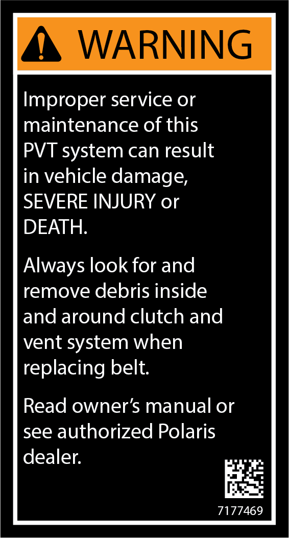 Improper service or maintenance of this PVT system can result in vehicle damage, SEVERE INJURY or DEATH.