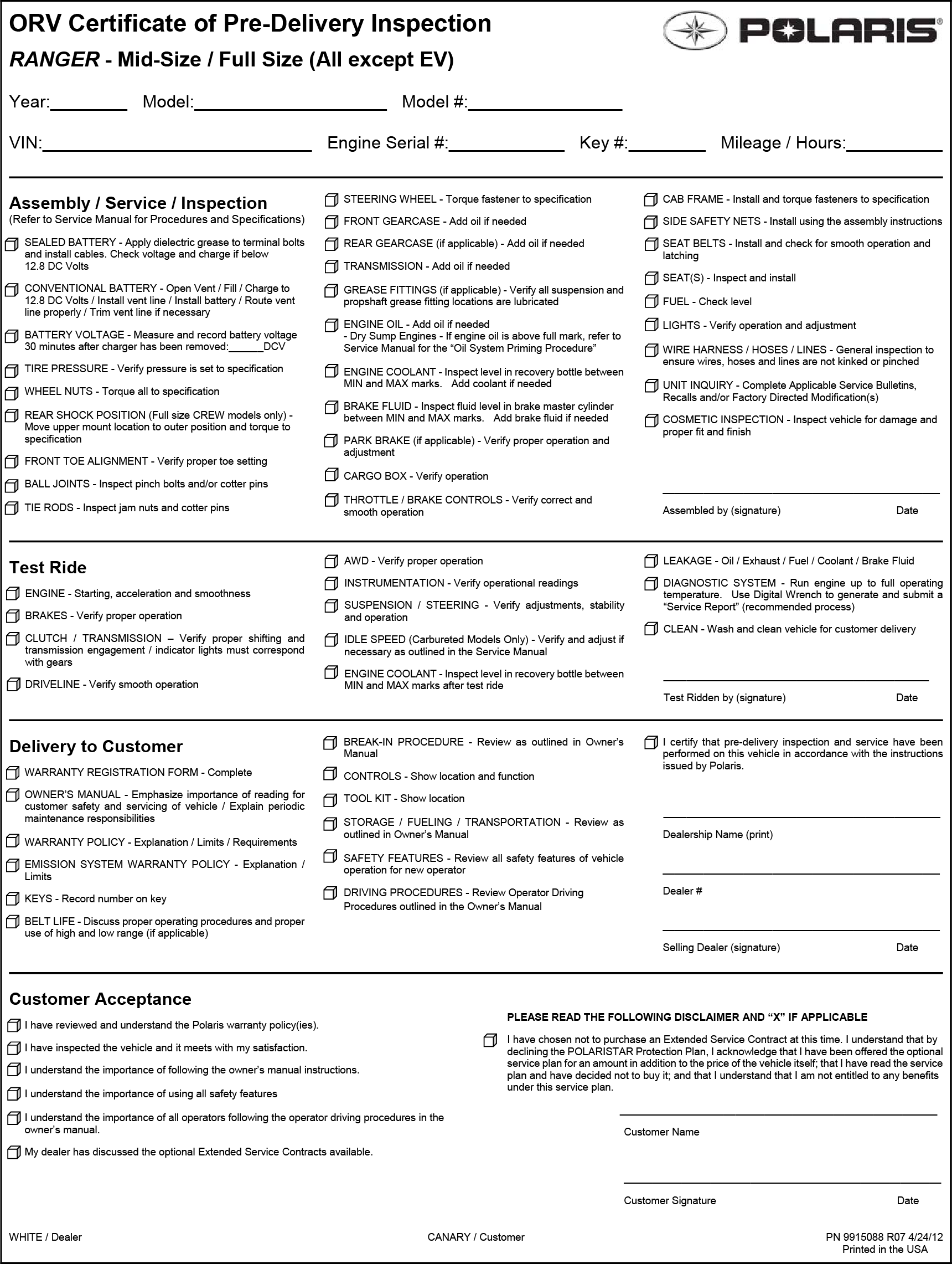 de ce véhicule reçoive un formulaire de certificat d’inspection