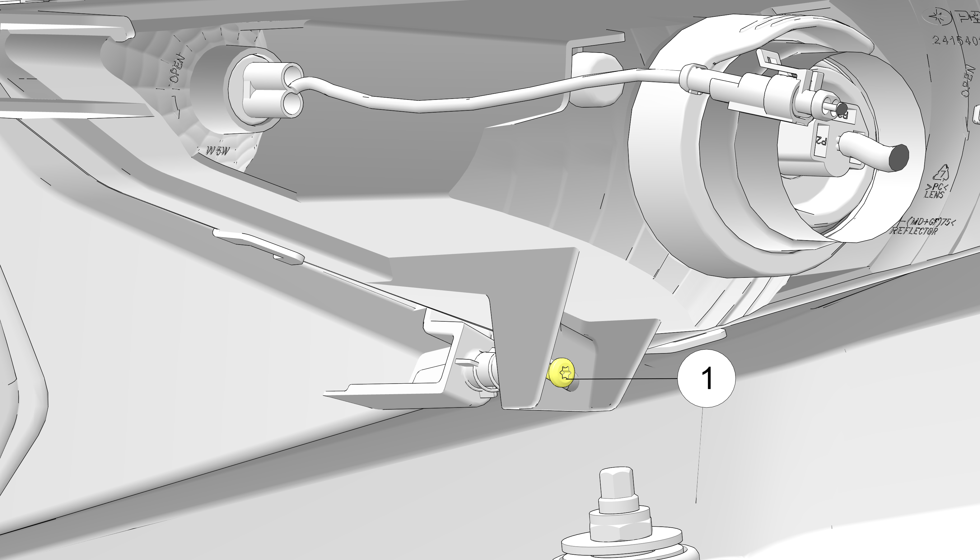 Si un phare doit être ajusté, rechercher la vis de réglage 1 à l’arrière du phare.