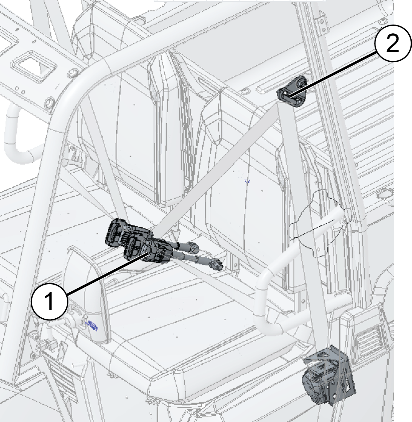 Pour une ceinture-baudrier à trois points d’attache avec boucles en D 2, tirer le loquet de la ceinture de sécurité vers le bas et en diagonale sur la poitrine vers la boucle 1 située sur le rebord intérieur du siège. La ceinture devrait bien s’ajuster sur les hanches et en diagonale sur la poitrine. S’assurer que la ceinture n’est pas vrillée.