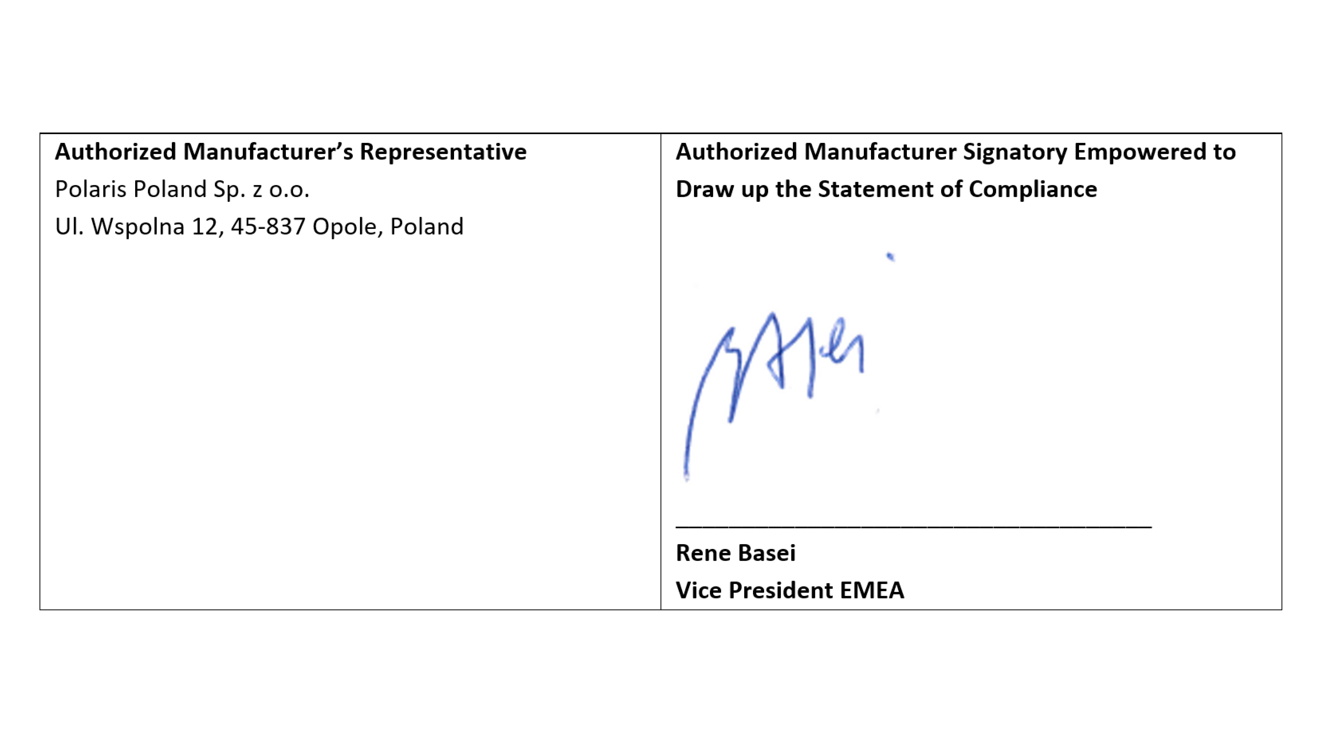 La présente déclaration de conformité a été préparée par Polaris Sales Europe Sàrl.