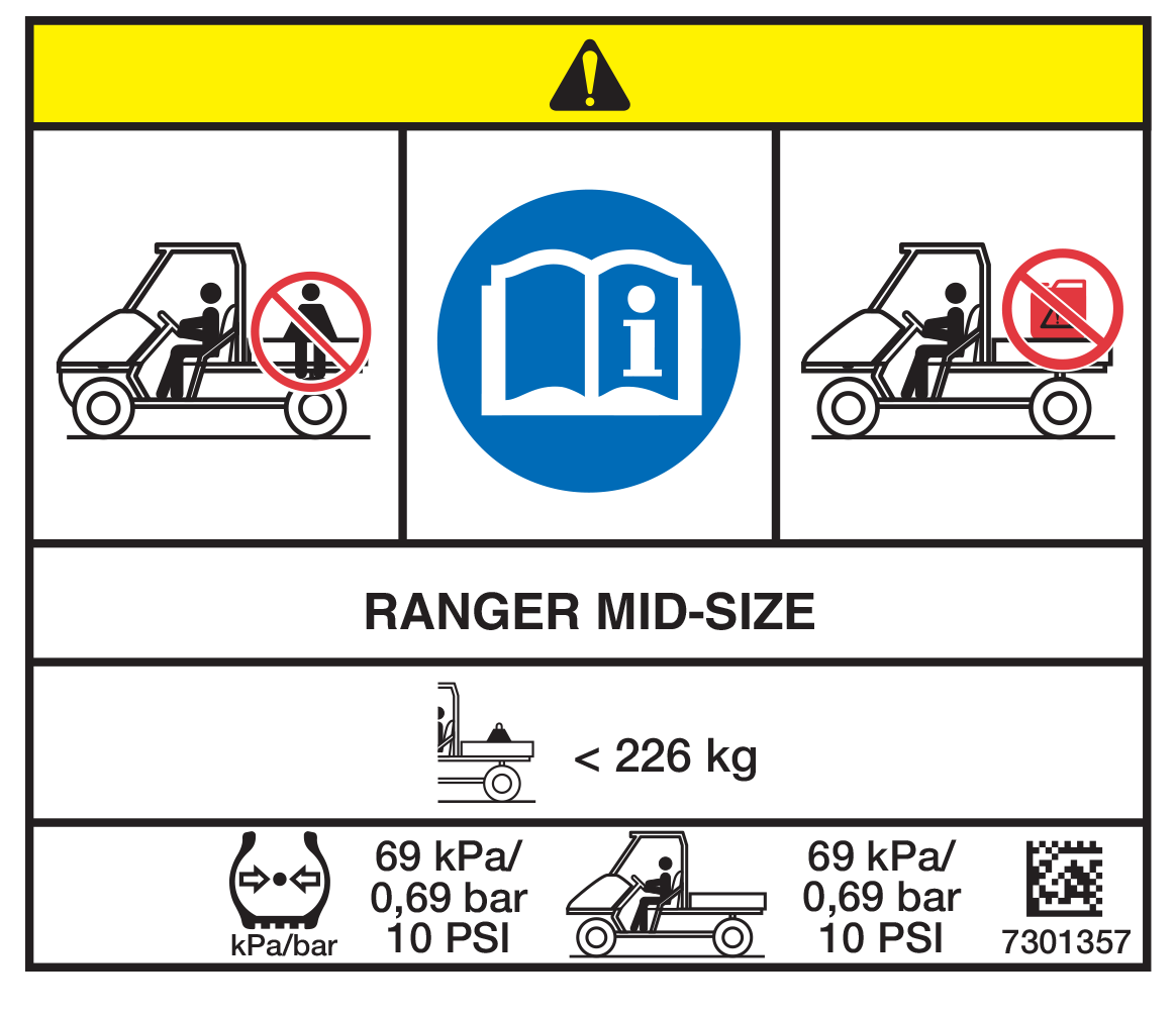 L’avertissement pour le passager/pression des pneus est situé sur la benne de chargement.