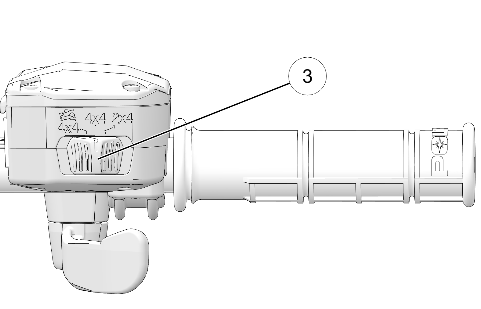 The All Wheel Drive (AWD) system is controlled by the Driveline Switch 3. Use this switch to engage ADC, 4x4, or 2x4. The vehicle automatically engages AWD when operating in forward or reverse if the switch is set to 4x4. For more information, see All Wheel Drive System.