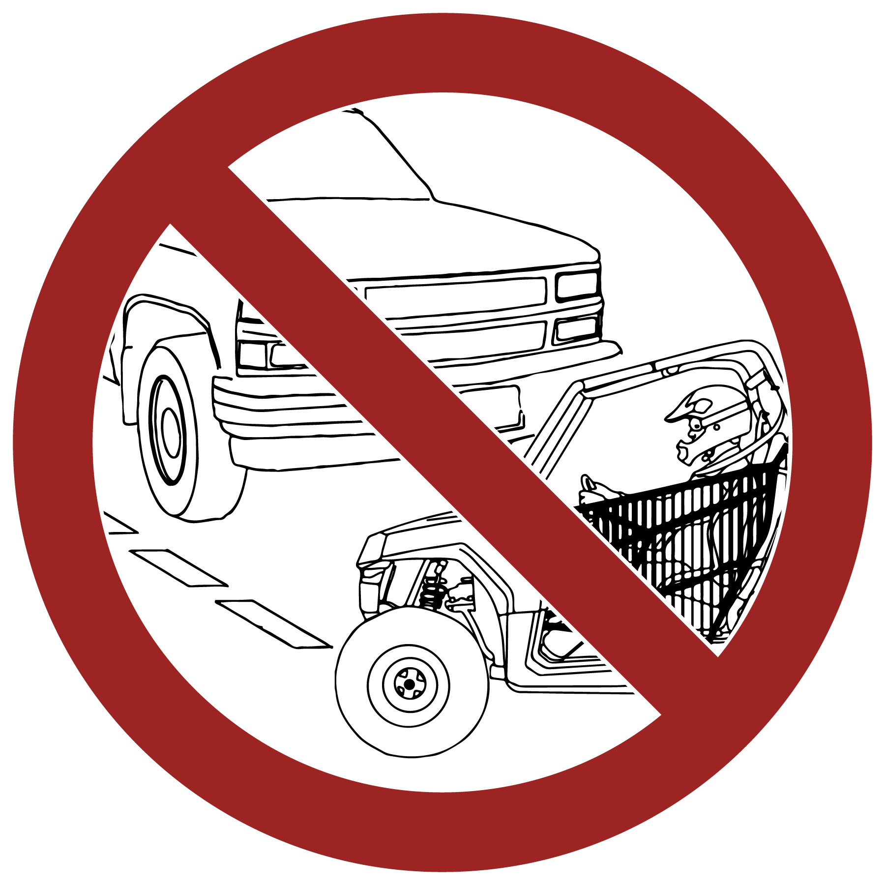 La operación de este vehículo en calles, caminos o autopistas podría causar un choque con otro vehículo. Nunca opere este vehículo en ninguna calle, camino o autopista, incluyendo los caminos de tierra y grava (a no ser que estén designados para vehículos para uso fuera de los caminos).
