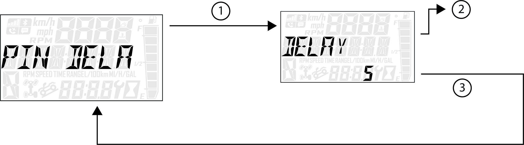 Seleccione “PIN DELAY” (retraso de PIN) del menú de jóvenes presionando el botón MODO.