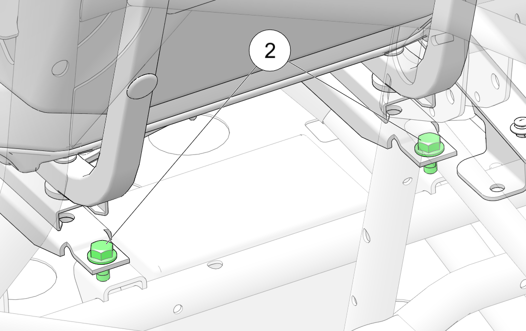 Retire los dos sujetadores 2 que aseguran las correderas del asiento a la estructura.