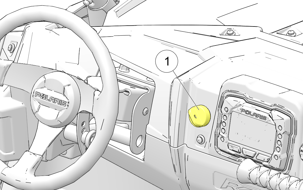 El interruptor de encendido 1 es un interruptor de tres posiciones operado con una llave. Use el interruptor de encendido para arrancar el motor. Vea los procedimientos de arranque en la Arrancar el motor. La llave se puede retirar del interruptor cuando está en la posición de APAGADO.