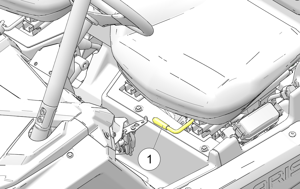 Levante la palanca del pestillo del asiento 1 ubicada debajo del borde delantero derecho del asiento del conductor.