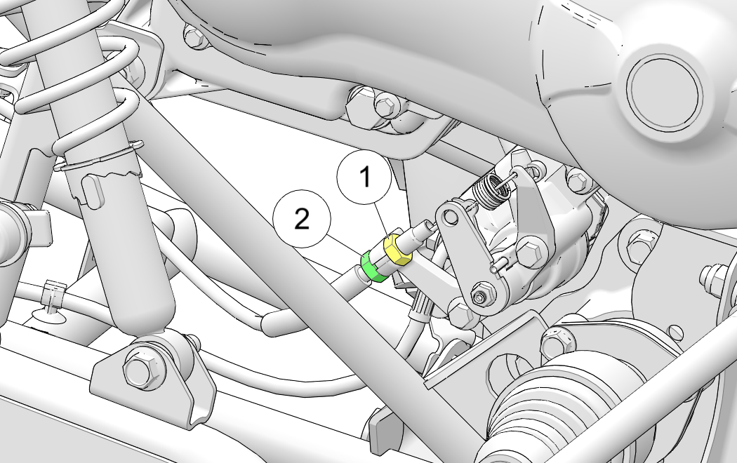 Mientras gira las ruedas traseras con la mano, gire la tuerca de ajuste 2 hacia la izquierda hasta que se sienta un arrastre significativo del freno. Luego gire la tuerca de ajuste 1/4 de vuelta.