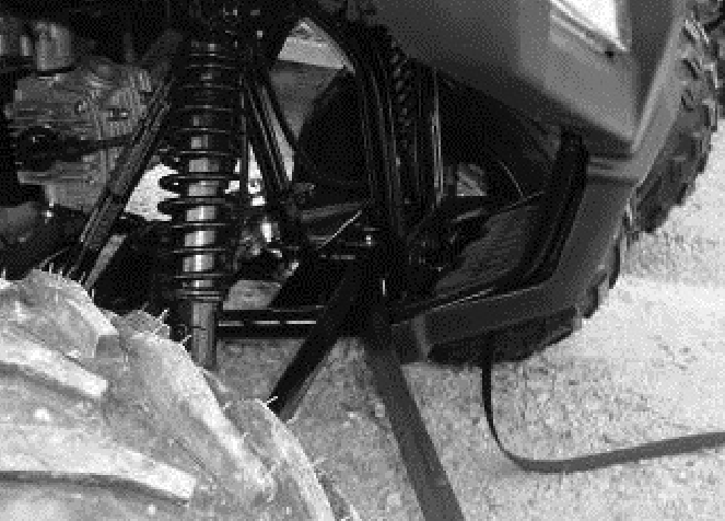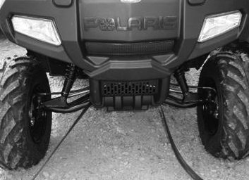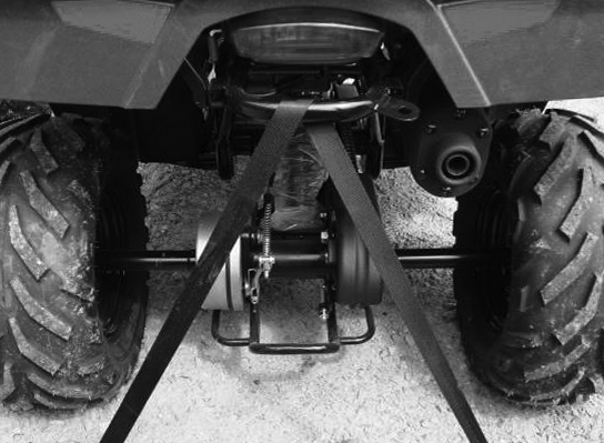 NOTICEAlways tie the frame of the ATV to the transporting unit securely with suitable straps or rope. The rack, bumper or handlebars do not offer enough support for tie-down while transporting. For high-speed trailering, it is recommended to remove the safety flag. -