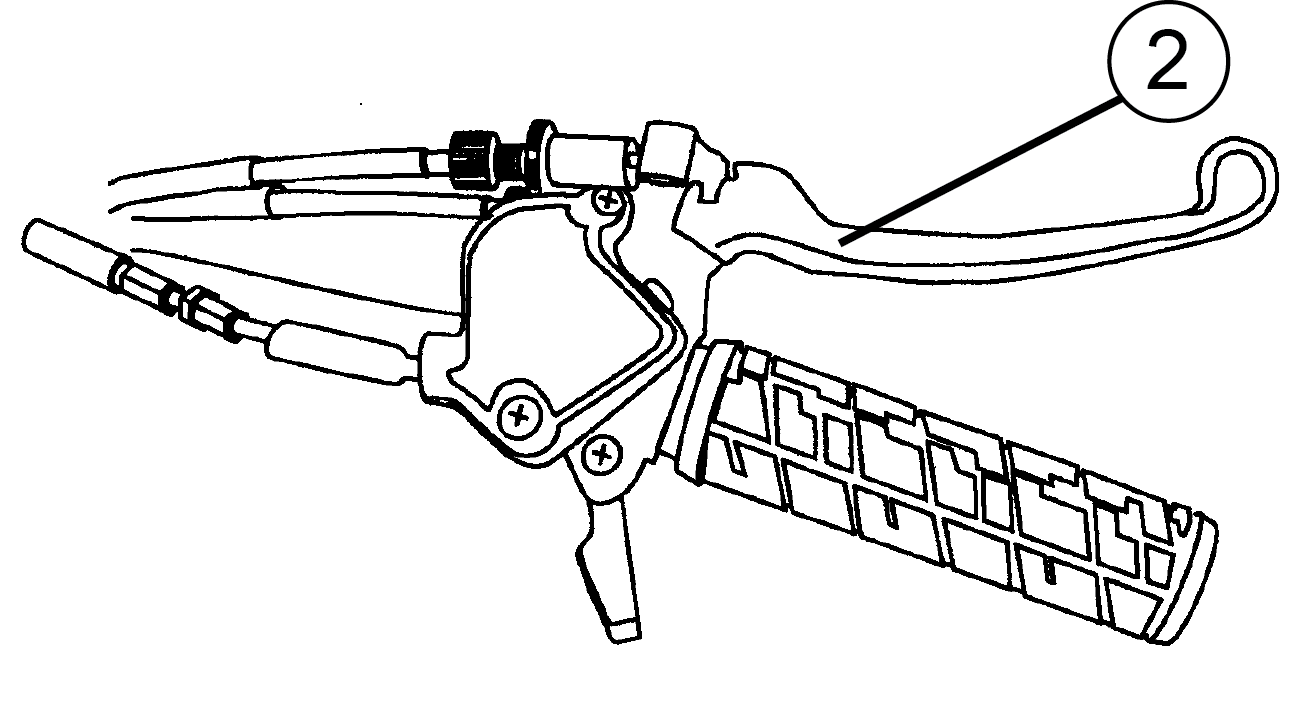 Squeeze both brake levers toward the handlebar at the same time to apply the brakes. The left lever controls the rear brakes 1. The right lever controls the front brakes 2.