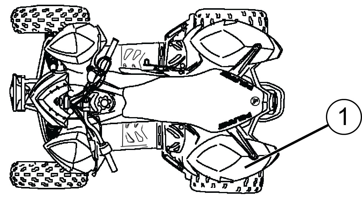 The Tire Pressure Warning label 1 is located on the exterior of the left rear fender.