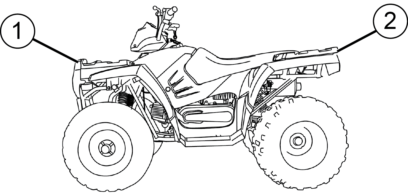 The front rack warning 1 is located topside of the forward rack. The rear rack warning 2 is located on the back—facing edge of the rear rack.