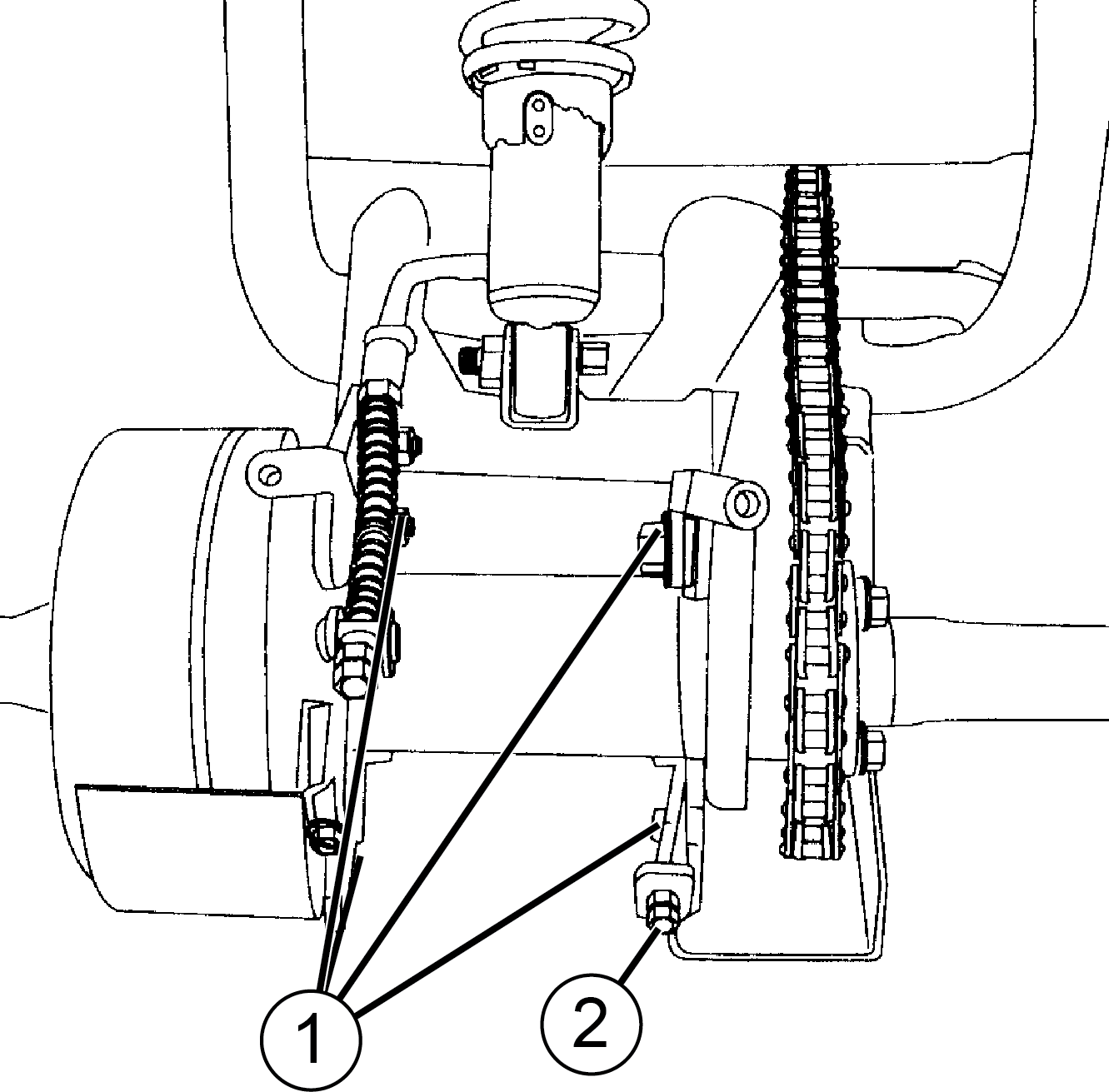 Turn the chain adjuster 2 clockwise to 1/4"-1/2" (6-12 mm) deflection.