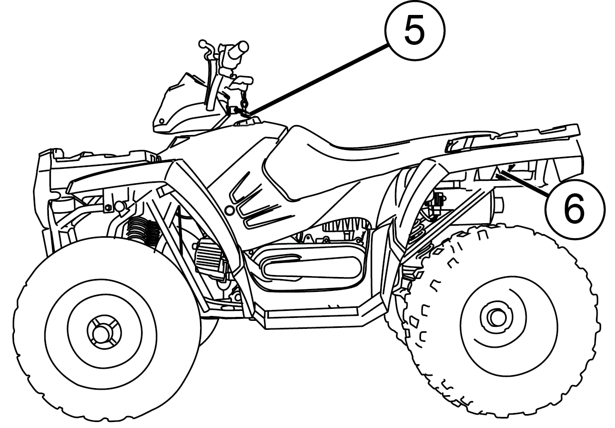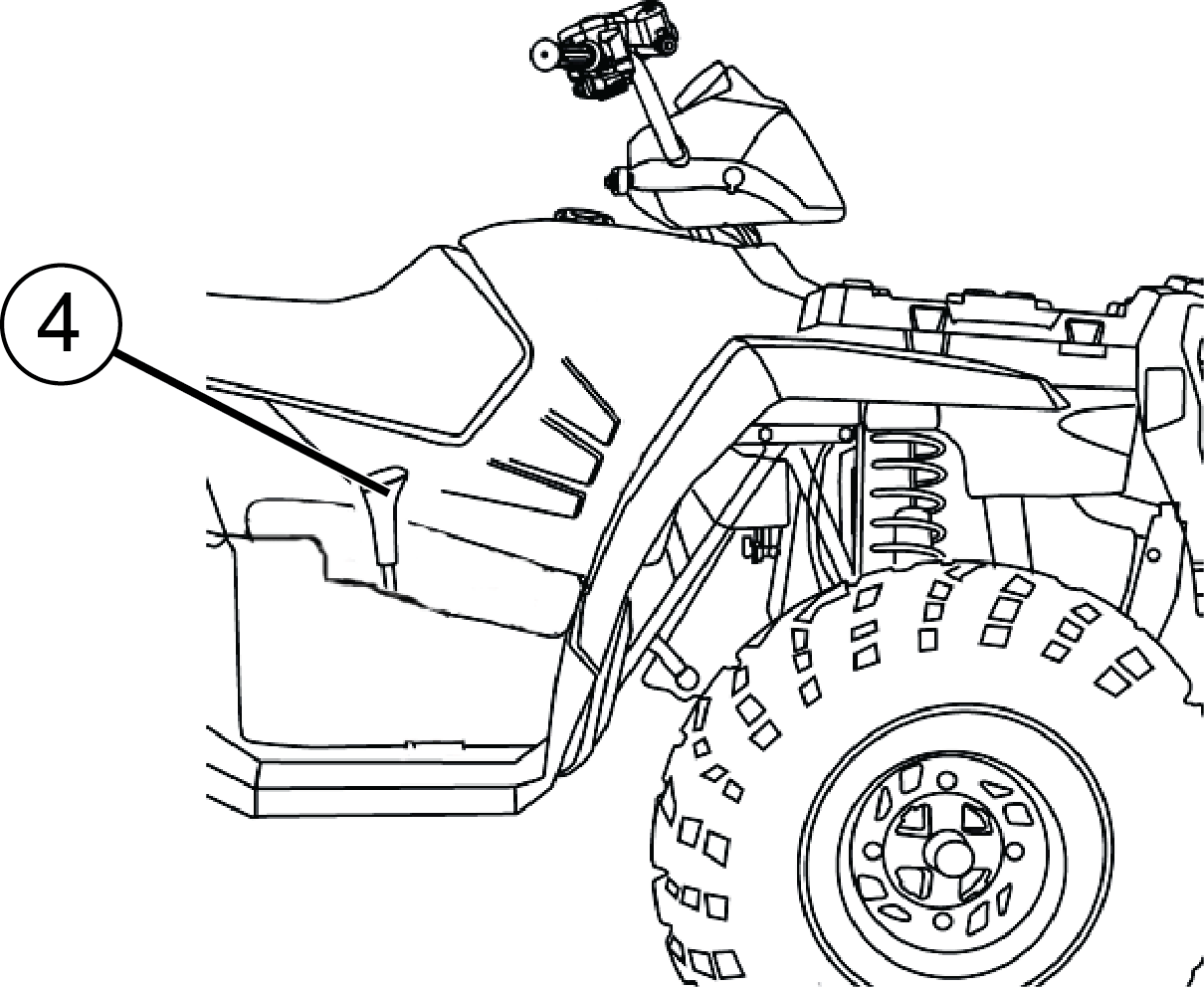 4 Shift Lever: The shift lever is on the right side of the ATV. Read about how to use the shift lever on Shift Lever.