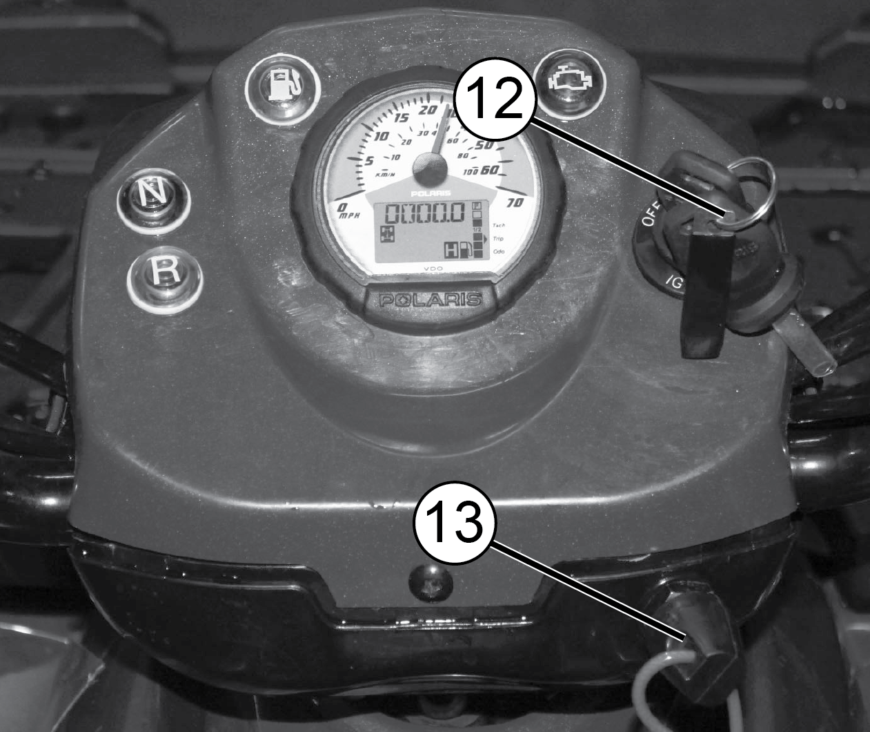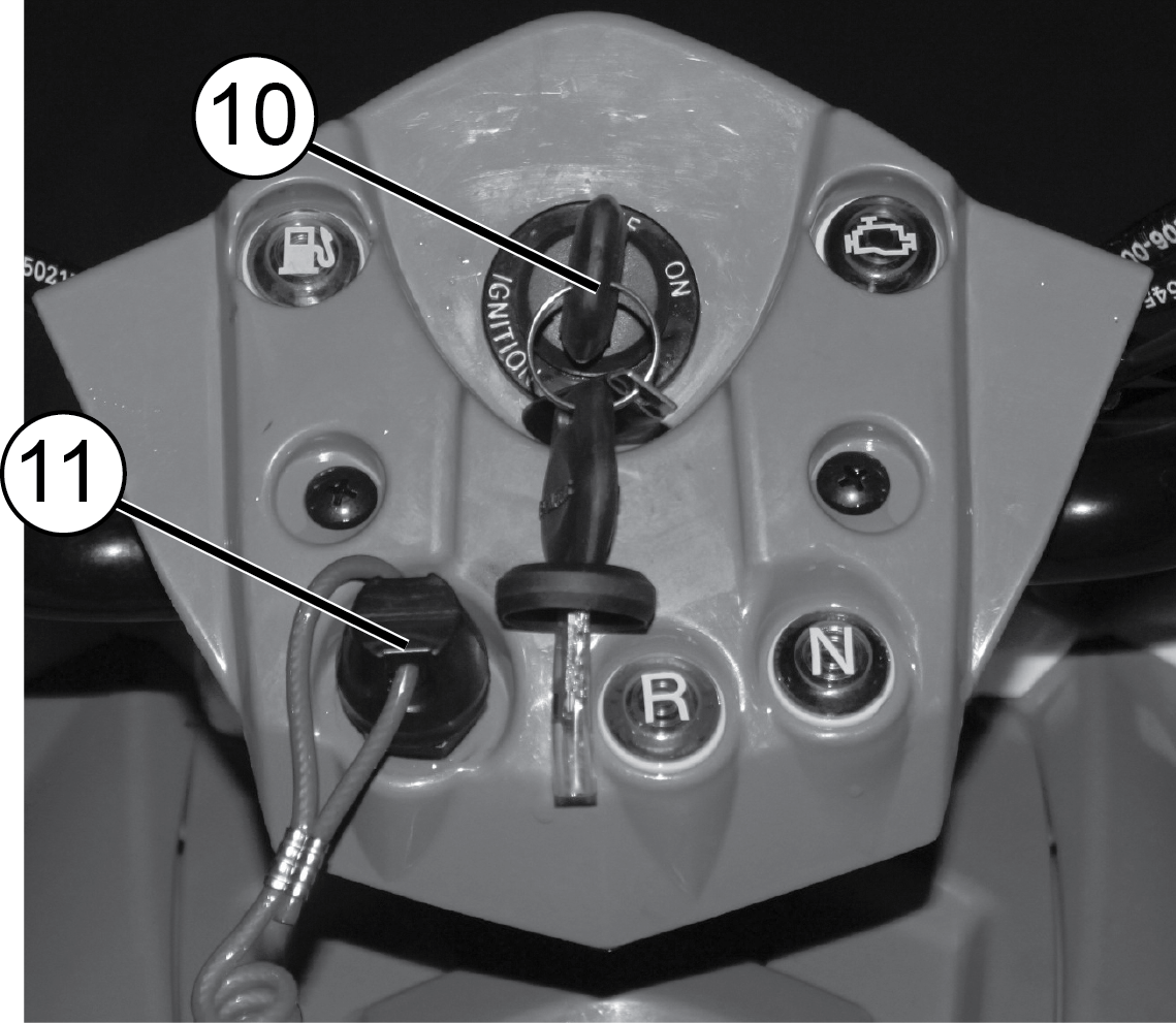 Tether Strap and Switch - The tether strap must always be attached snugly to your right wrist and to your ATV every time you drive. If you fall off your ATV, the tether strap will pull away from the switch and the engine will stop.