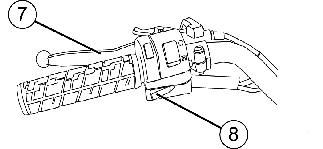3 Throttle Control: Press the throttle lever with your thumb when you want your ATV to move forward. Always be sure the throttle control does not stick before you drive your ATV. Read more about this on Pre-Ride Check.