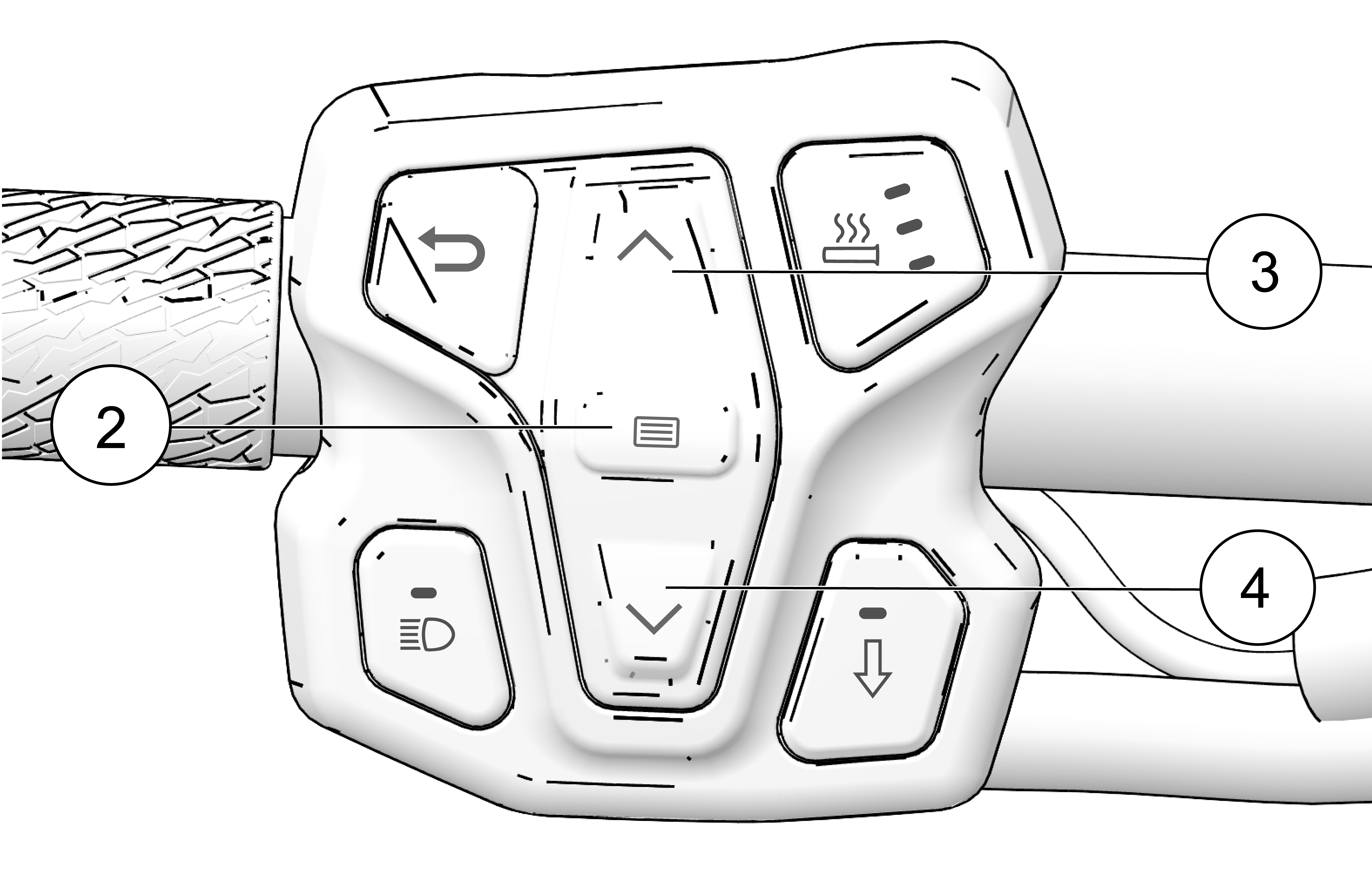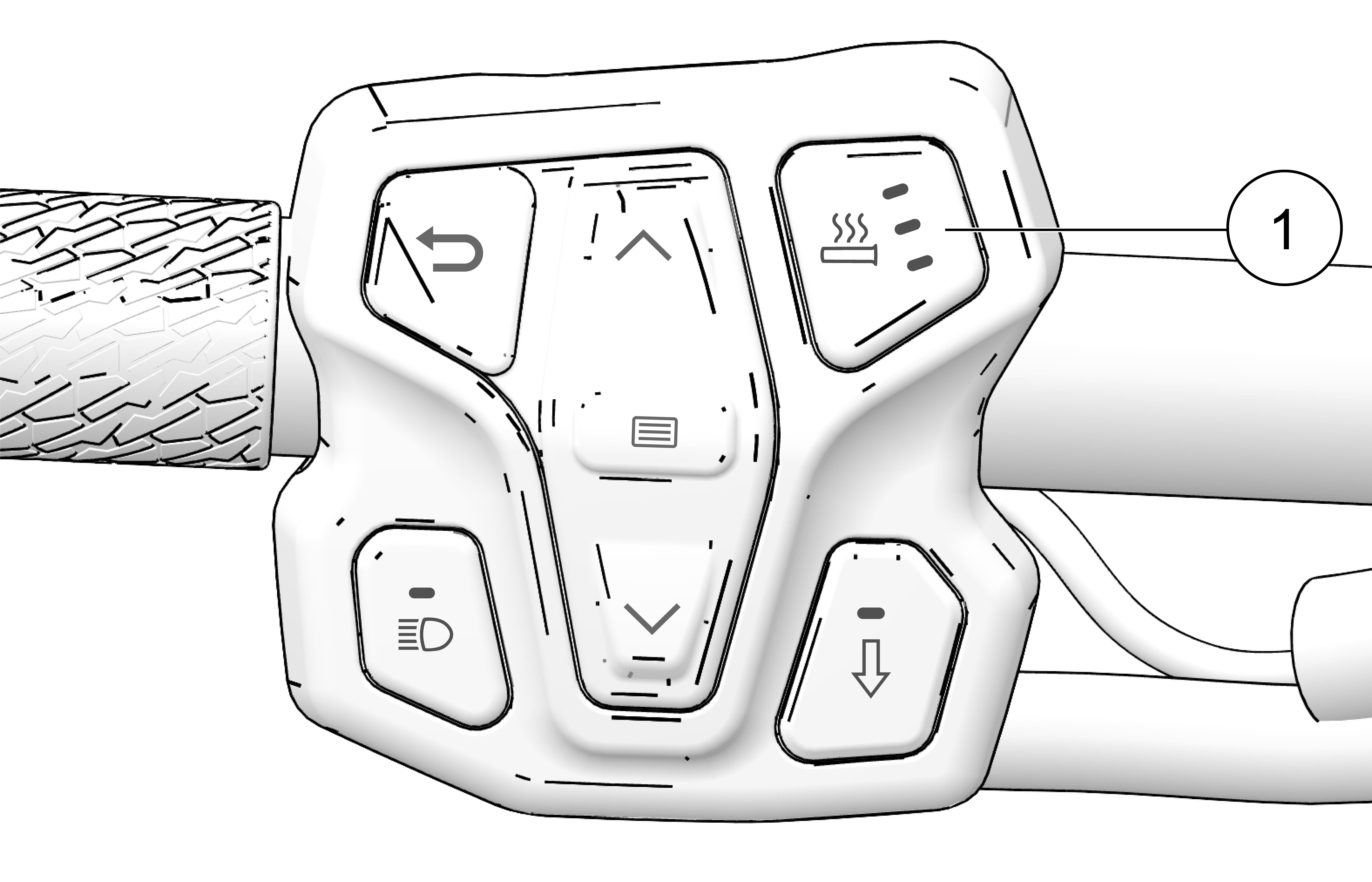 To activate the SmartWarmer system in the handlebars, press the Heated Grips button 1 on the left hand controls. There are four heat levels to choose from: