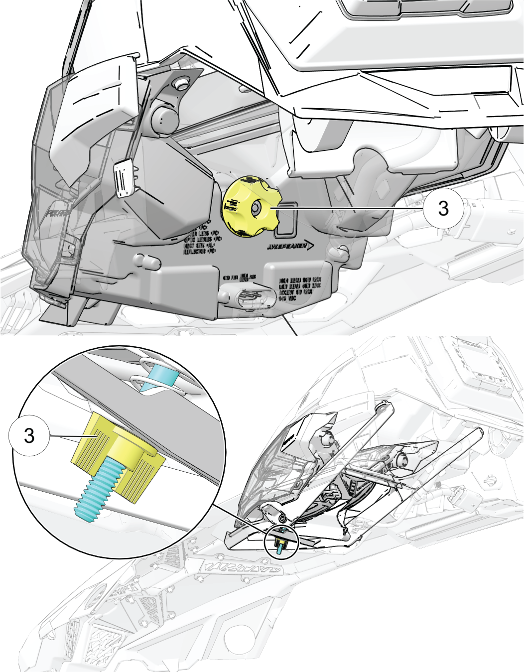 NOTICEDepending on the model, the headlight adjuster knob 3 will be located on the bottom of the headlight assembly or at the rear of the light above the plug.-