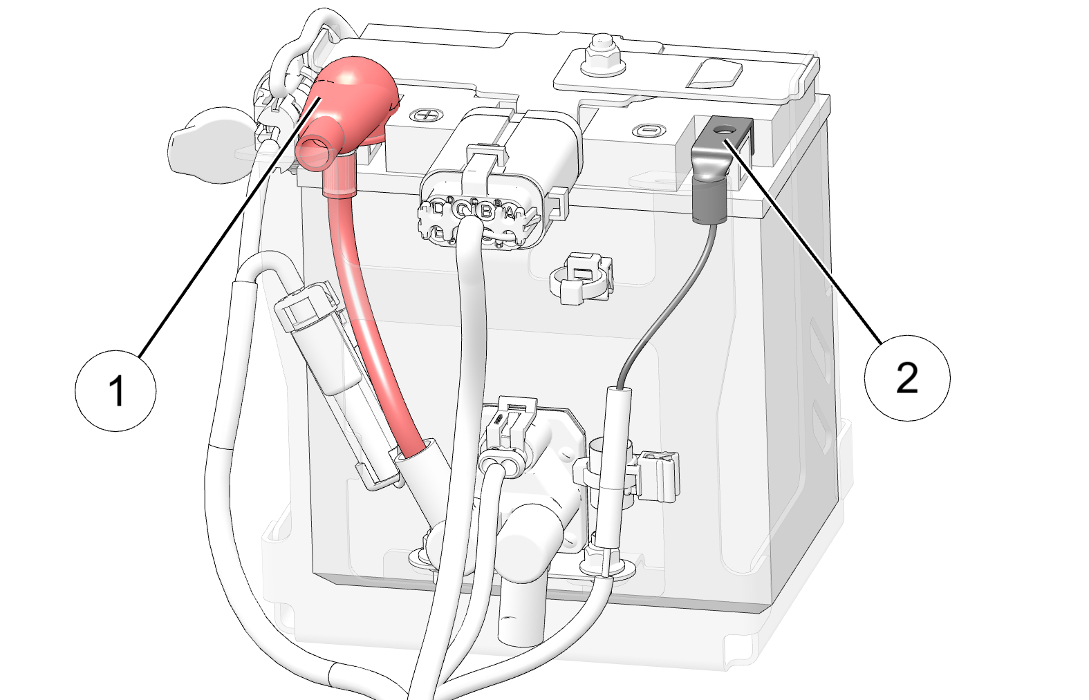 Connect and tighten the negative (black) cable 2 to the negative terminal last.