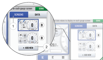 Follow the instructions below to create customized gauge screens.