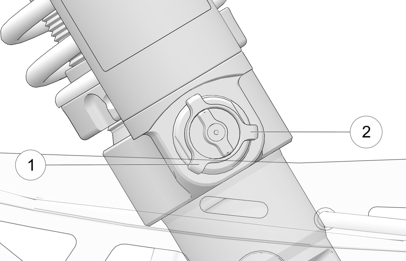The inside clicker 2 adjusts shock compression during low speed compression events. Turn clicker clockwise to increase compression and counterclockwise to decrease compression.