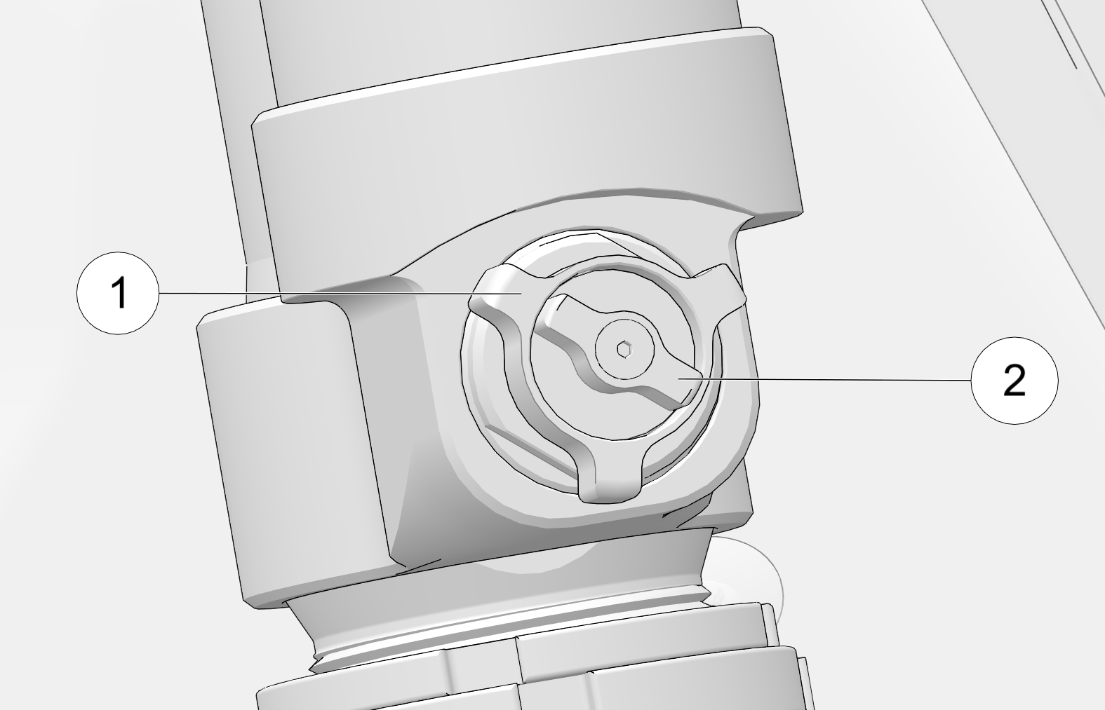 The inside clicker 2 adjusts shock compression during low speed compression events. Turn clicker clockwise to increase compression and counterclockwise to decrease compression.