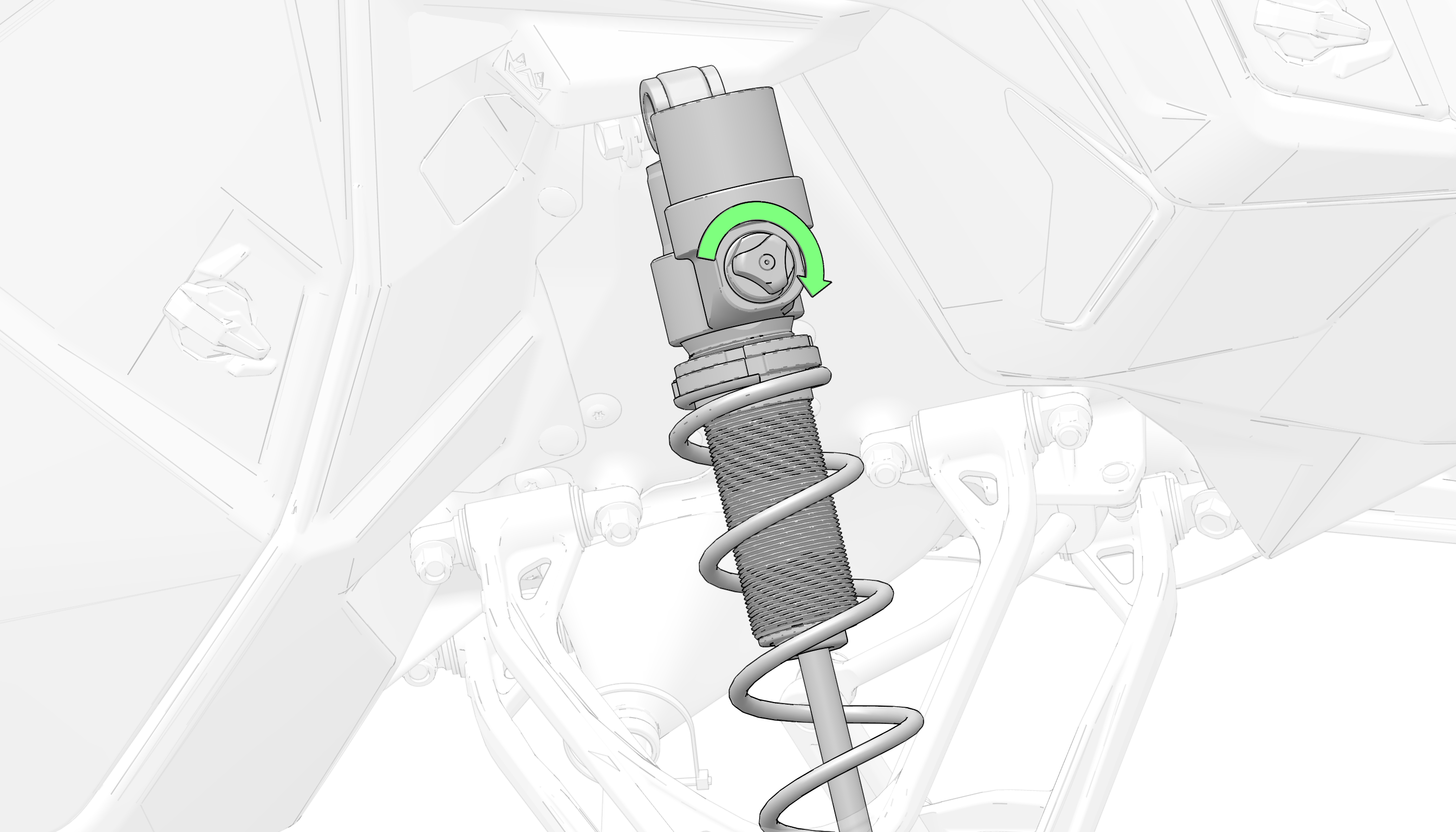Always perform shock spring preload adjustments with the weight of the vehicle removed from the shock and with the shock at full extension.