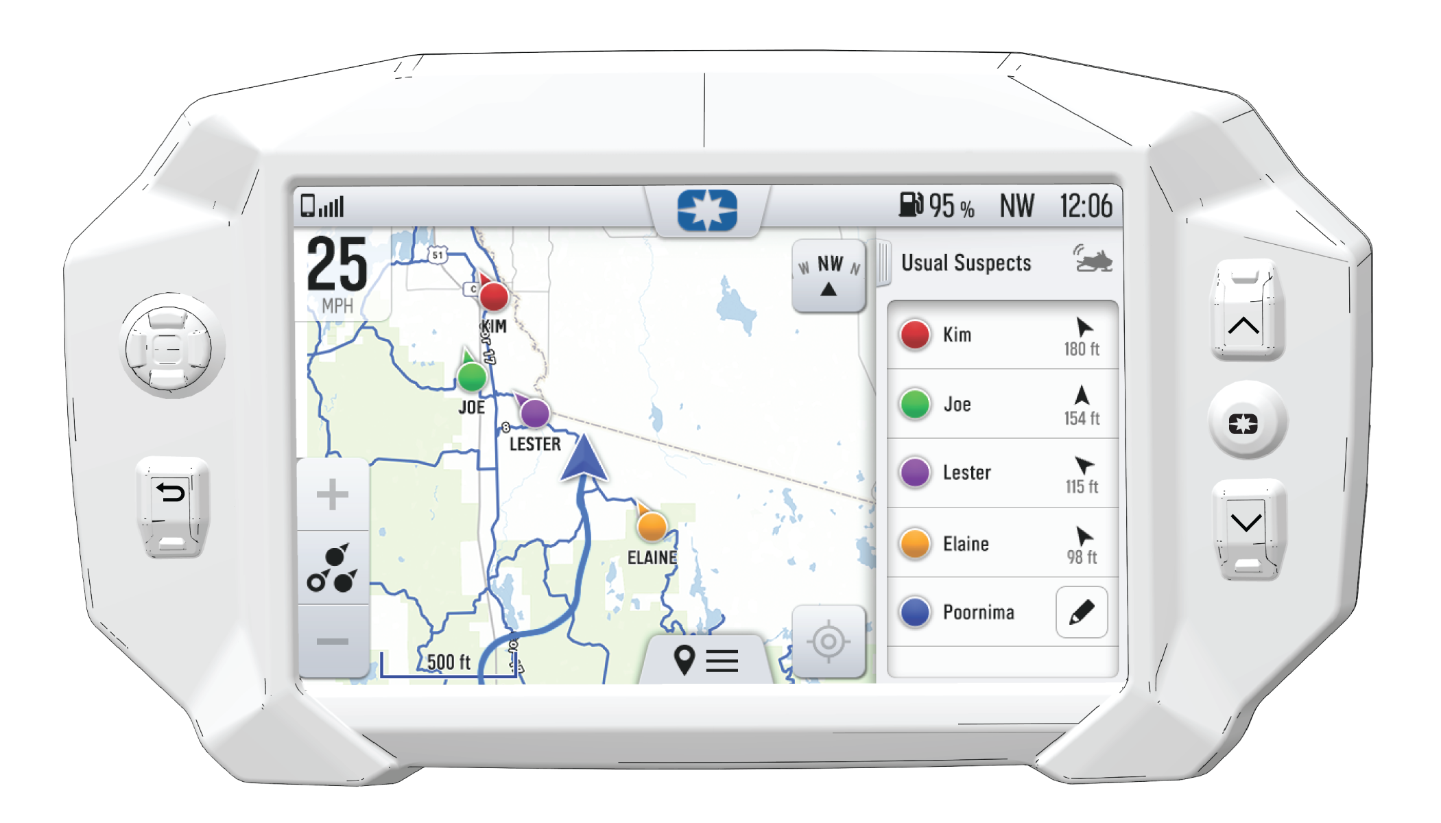 Invite your friends to a group to see their live location on the map of your smartphone, tablet, or in vehicle Ride Command Display.