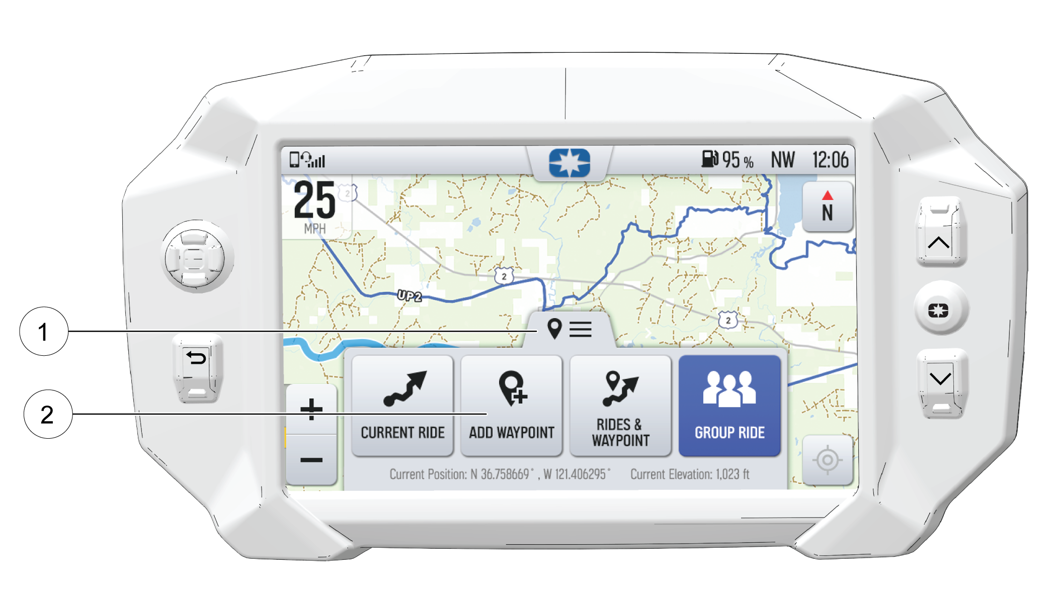 Waypoints are user-defined locations on the map. Waypoints can be saved and shared with friends.
