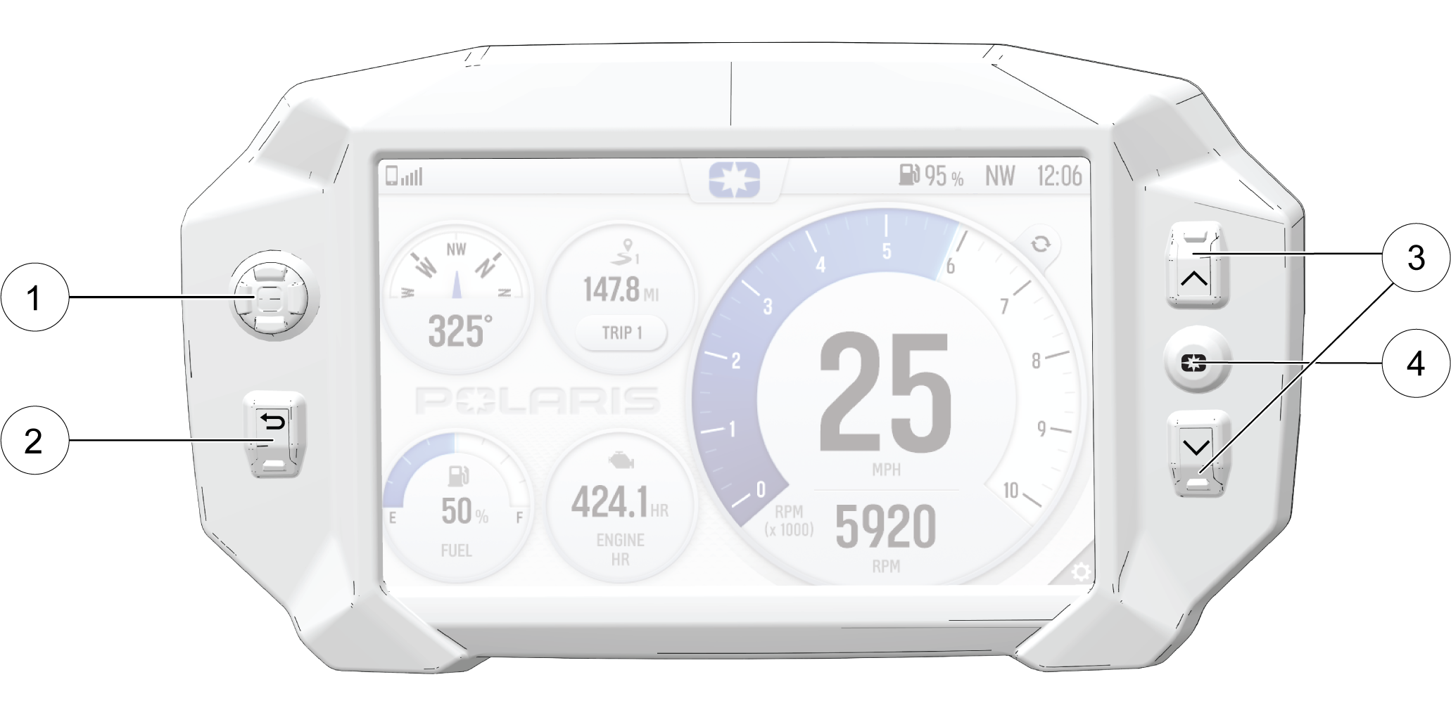 Polaris Button | Opens and closes the Badge Panel. |