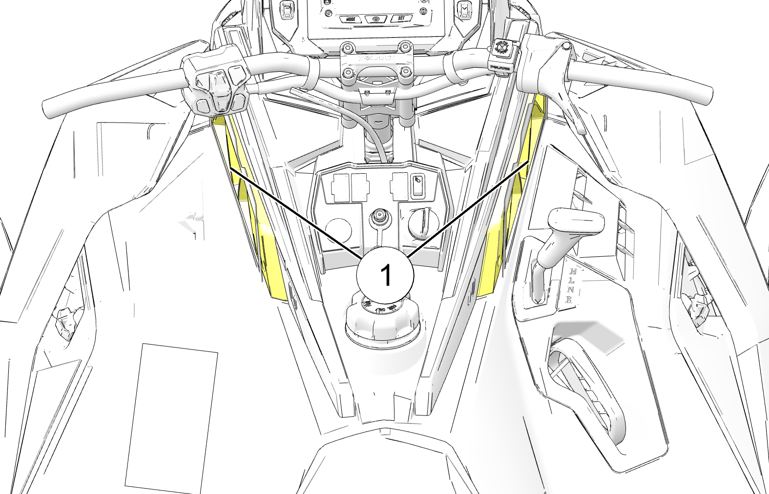 The intake foam filters 1 limit snow ingestion into the intake system. When operating in loose powder snow, check the foam filters periodically to remove any accumulation of snow.