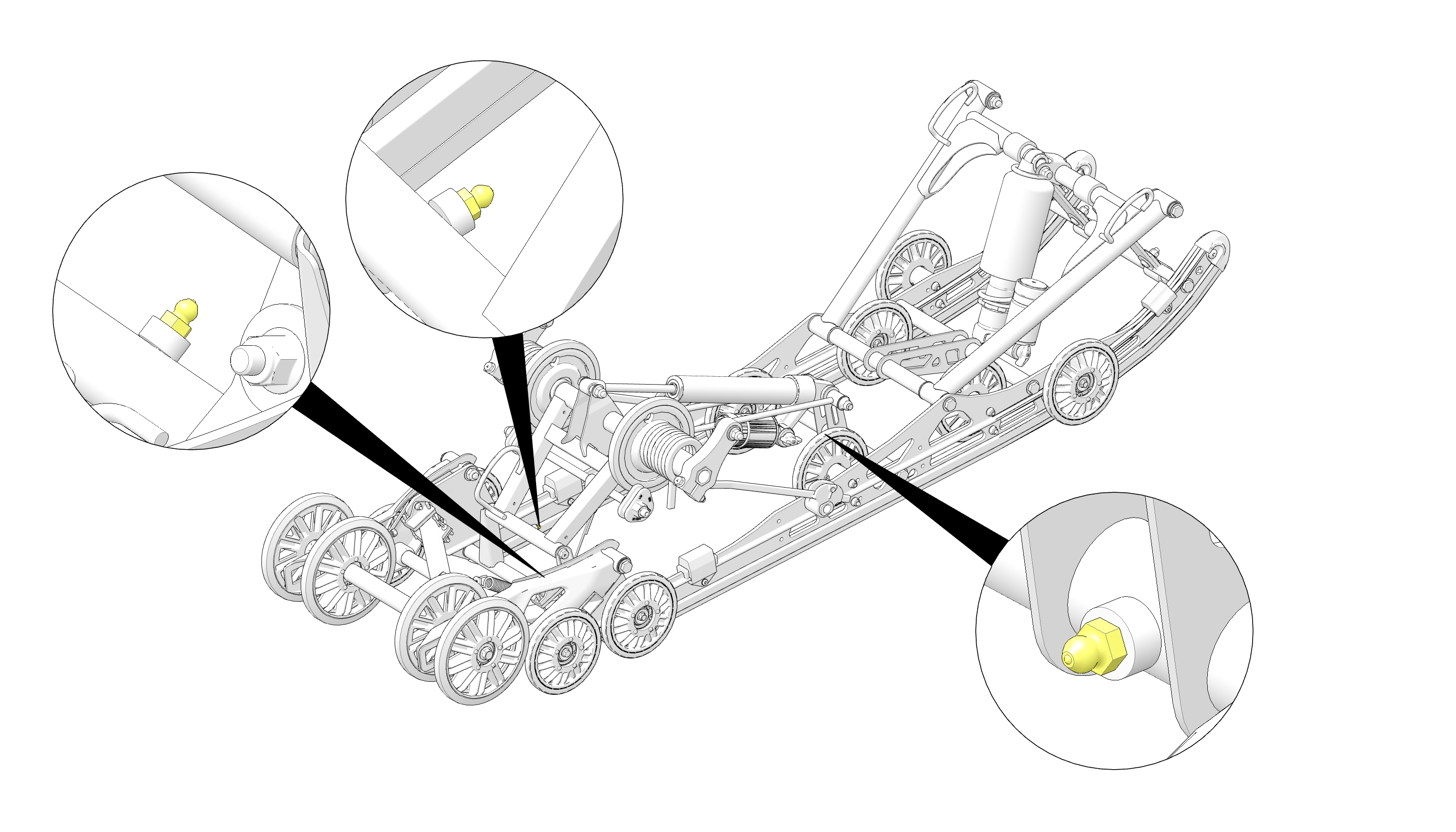 Lubricate the suspension pivot shafts with POLARIS All Season Grease at the intervals outlined in the Periodic Maintenance Table section and before seasonal storage. When operating in heavy, wet snow conditions, lubricate every 500 miles (800 km).