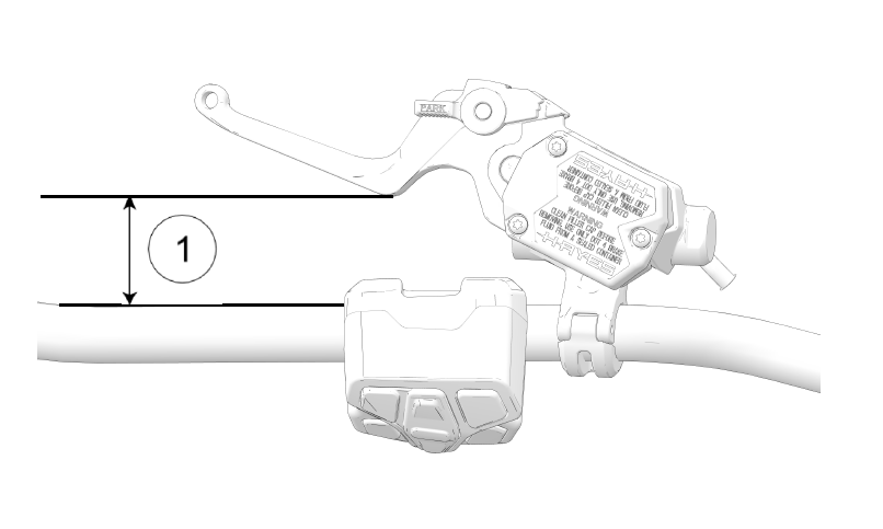 Squeeze the brake lever. It should move no closer to the handgrip than 1/2 inch (1.3 cm) 1. A smaller distance indicates low brake fluid level or air in the hydraulic system. Refer to the brake bleeding information in the Hydraulic Brake Inspection section. An authorized POLARIS dealer can assist.