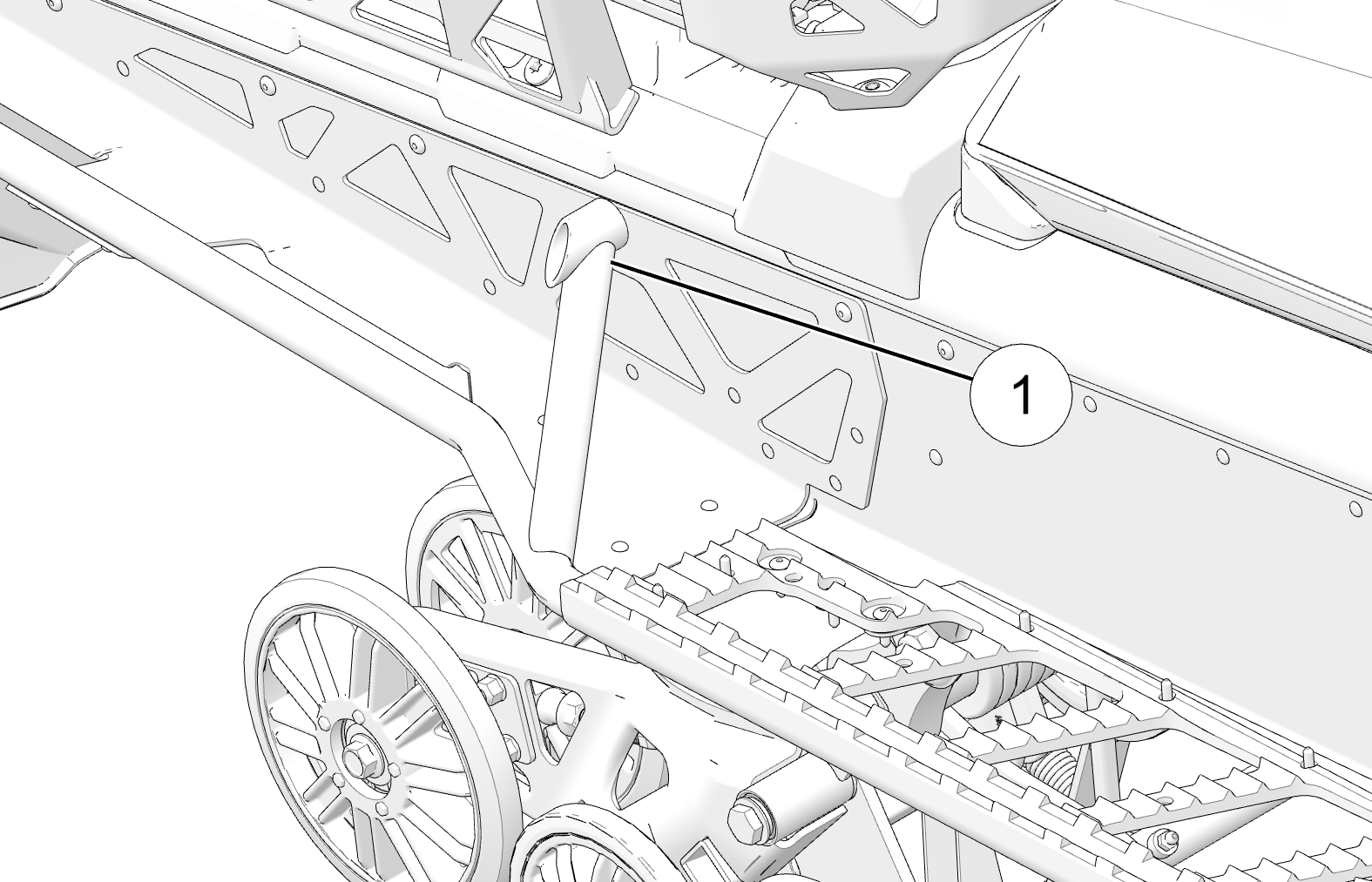 Some procedures require raising the snowmobile to remove weight from the component being inspected. Elevate the snowmobile by attaching a strap to the left or right side rear structure tube 1. |