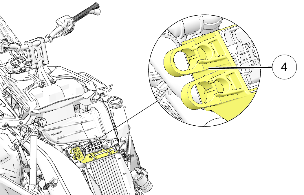 Slide the spare belt holder outward to release it from the mount 2 on the footrest.