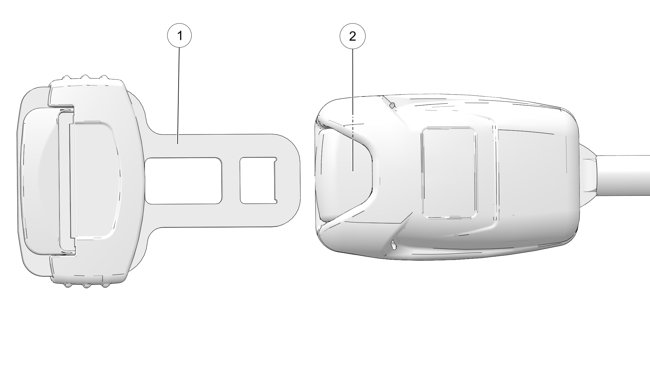 2. Enfoncer la languette de fixation 1 dans la boucle 2 jusqu’à ce qu’elle s’encliquette.