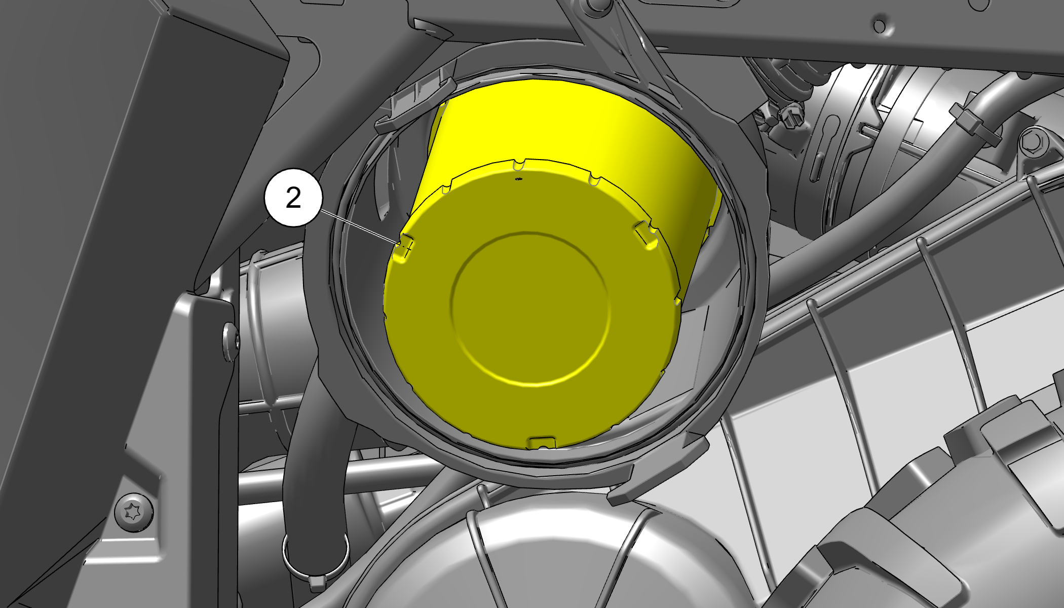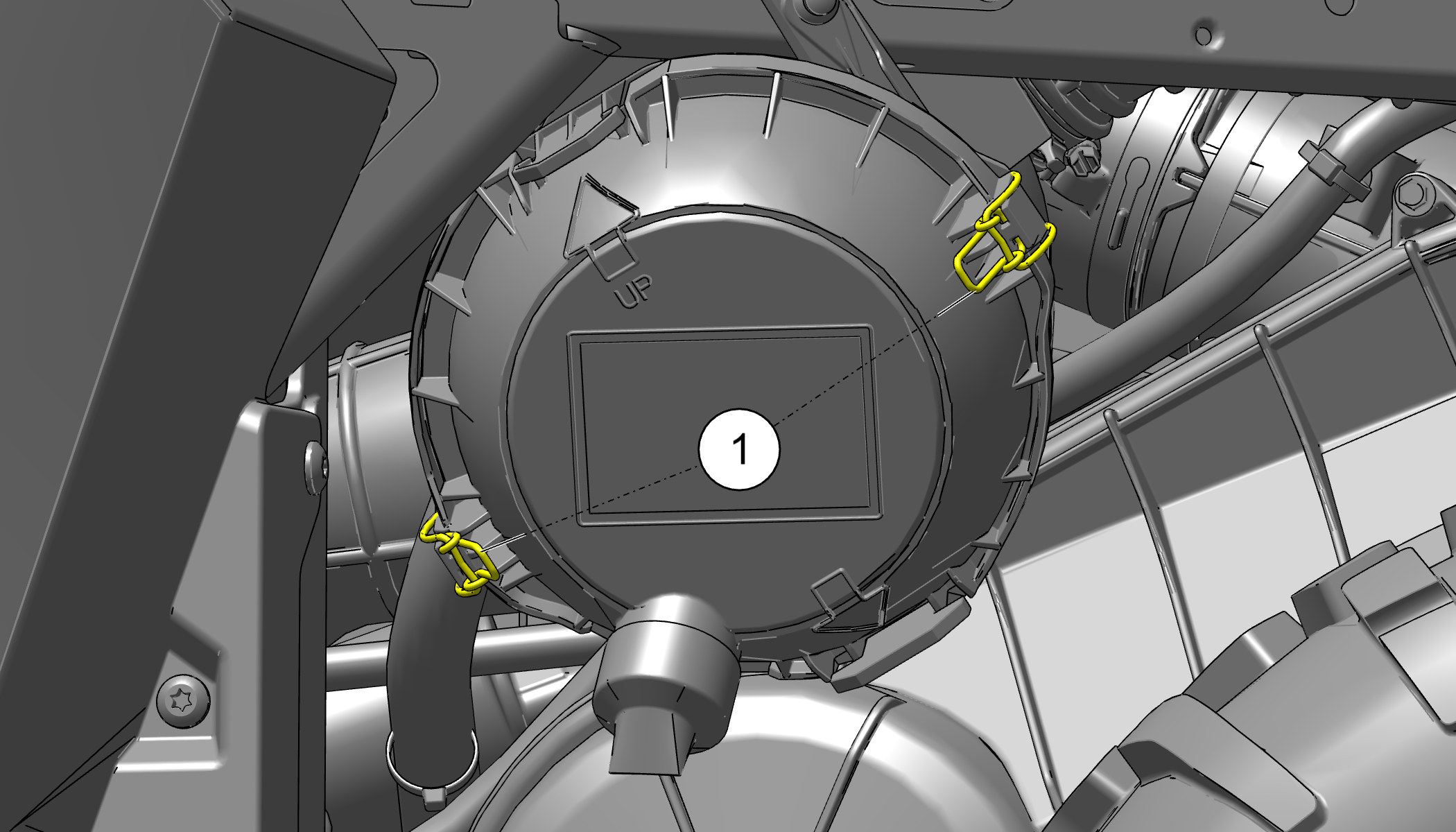 Dégager les deux loquets du couvercle de boîte à vent 1 et lever le couvercle vers l’extérieur pour accéder à l’élément du filtre à air.