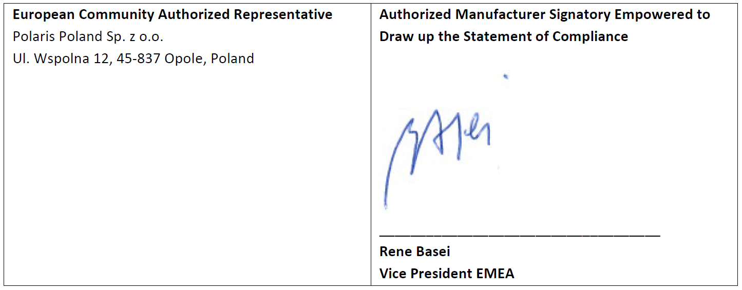 Cette déclaration de conformité a été préparée par Polaris Sales Europe Sàrl.