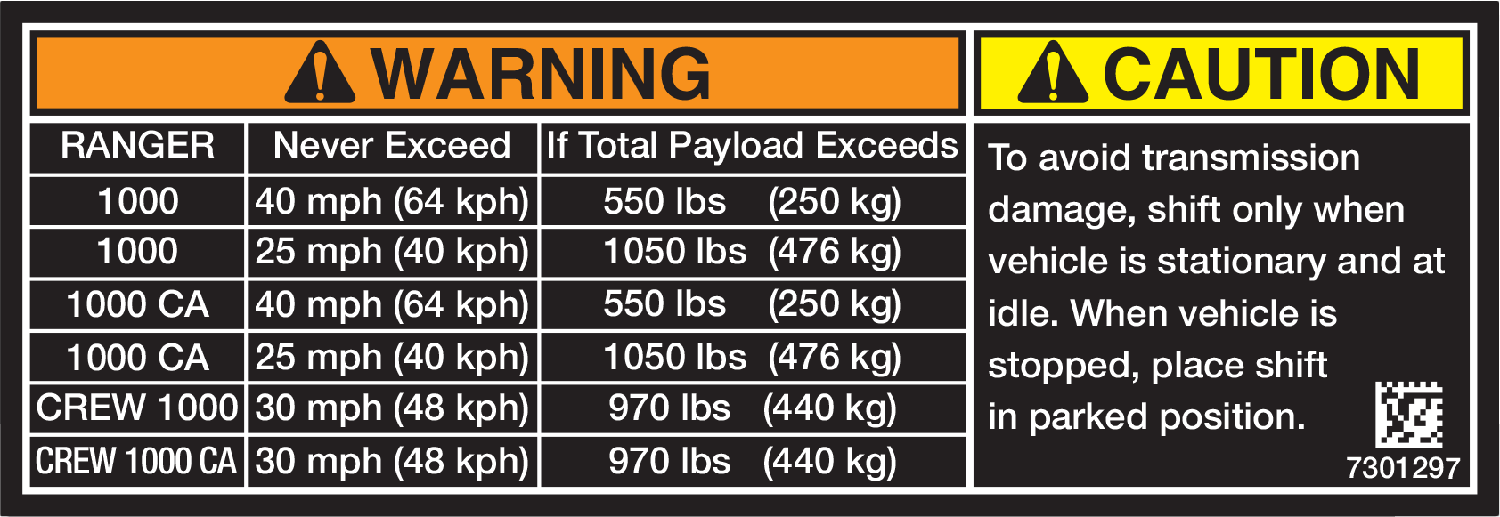 | RANGER | Ne jamais dépasser | Si la charge utile totale dépasse |