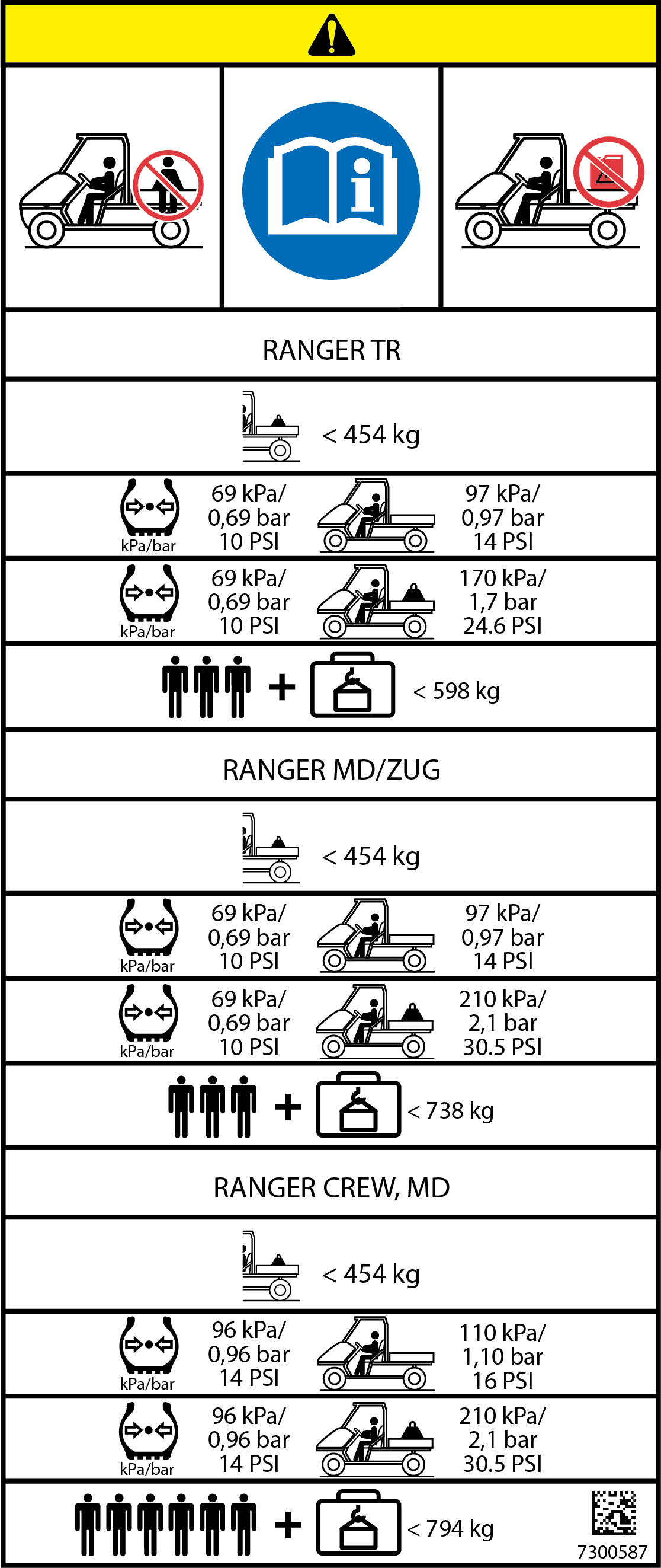 AVANT 69 kPa ARRIÈRE 170 kPa |