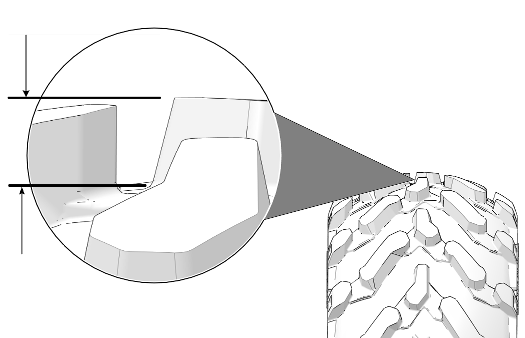 Always replace tires when tread depth is worn to 1/8 in (3 mm) or less.