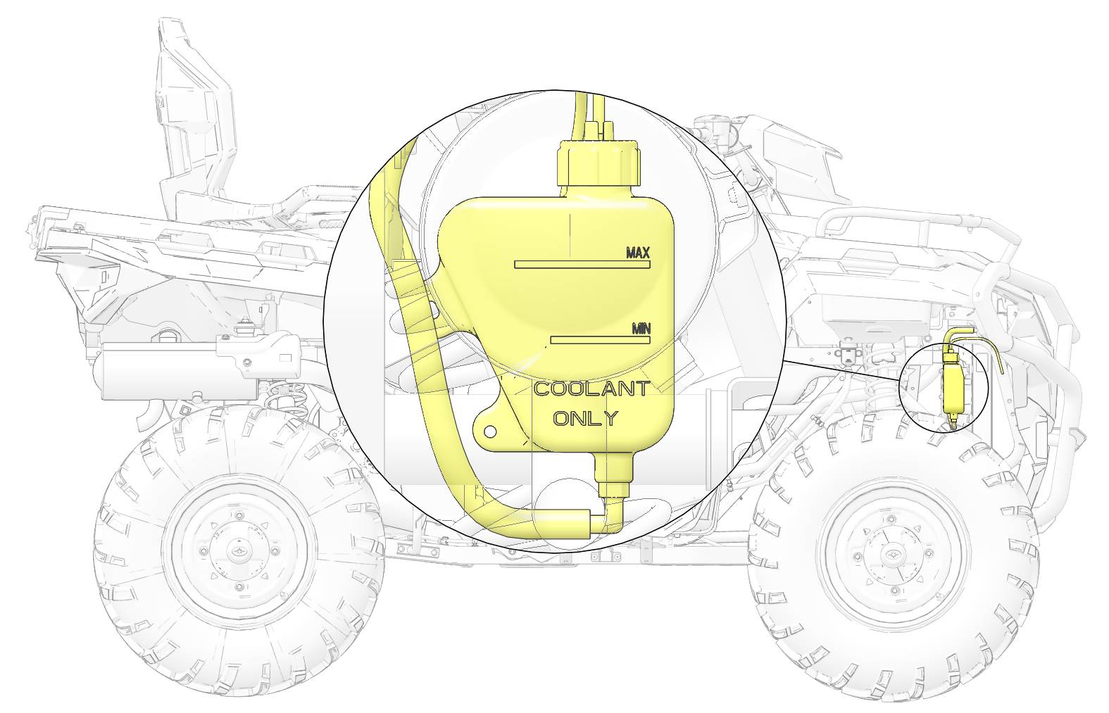 If the level is low, remove the bottle cap and add coolant as needed. Maintain the coolant level between the minimum and maximum marks on the bottle (when the fluid is cool).