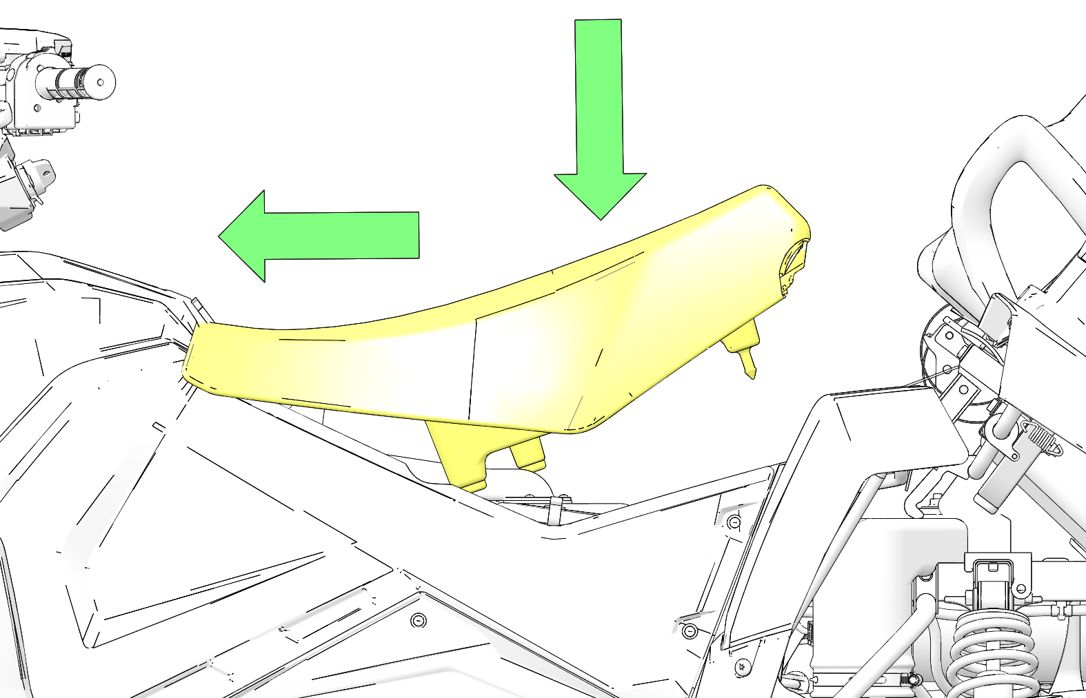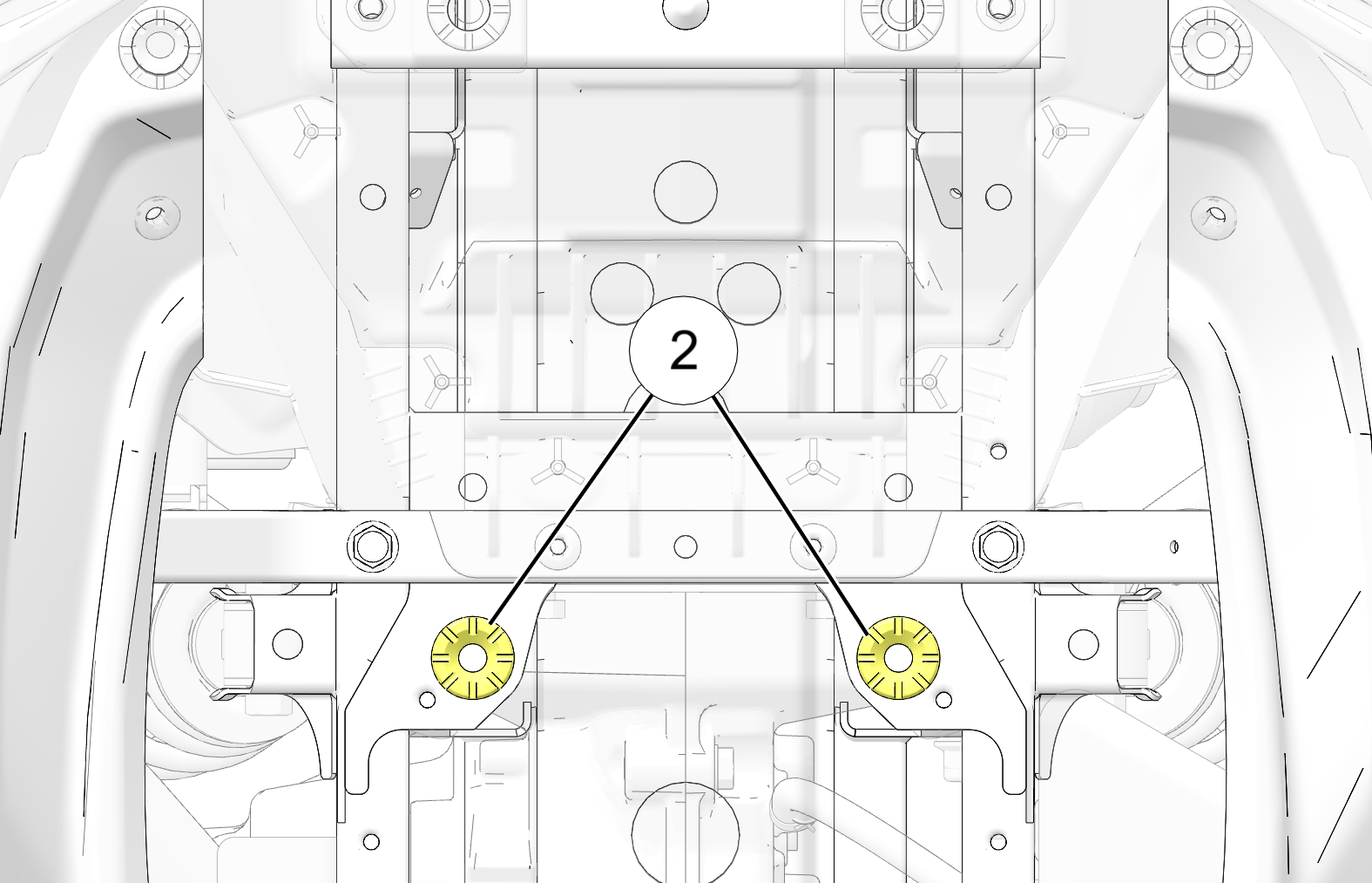 Press the rear of the driver seat down firmly to seat the two pins into the grommets 2.