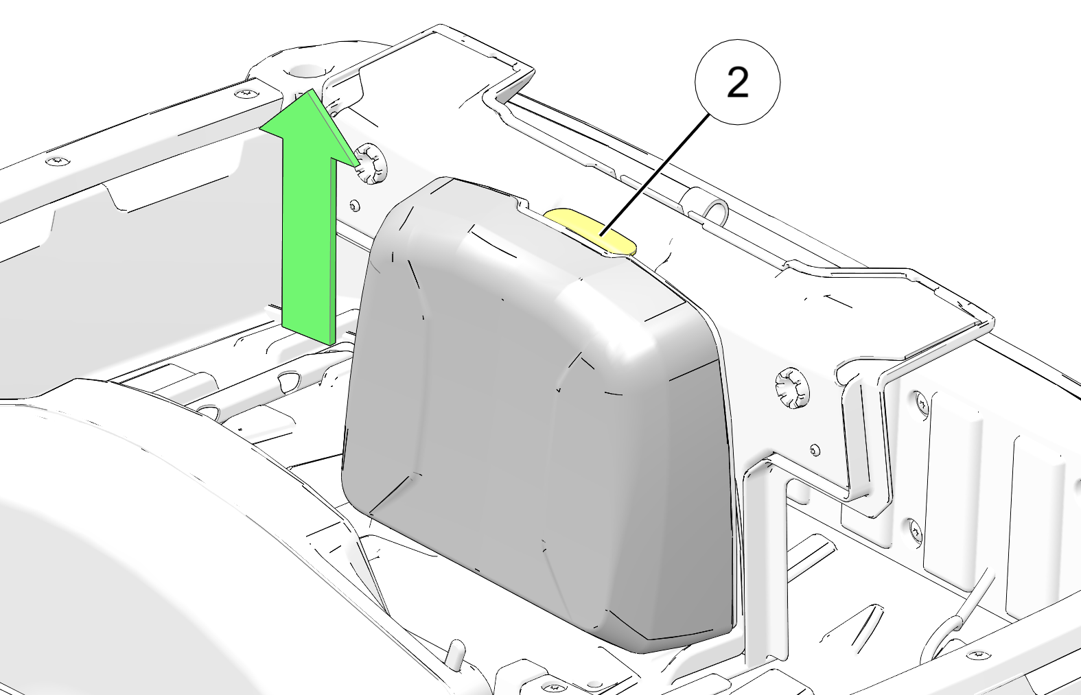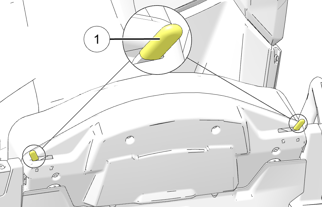 Lower the operator backrest to create the passenger seat. Two retaining pins under the seat should fit into the two grommets on the seat base.