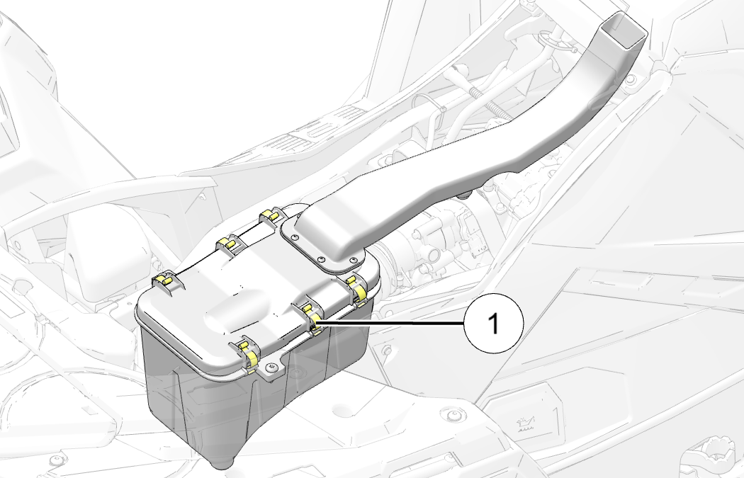 Install the air box cover and secure with the clips.