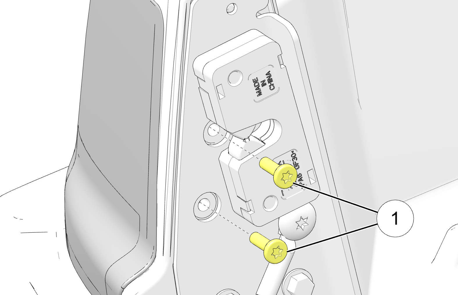 Remove the two screws 1 near the tailgate latch.